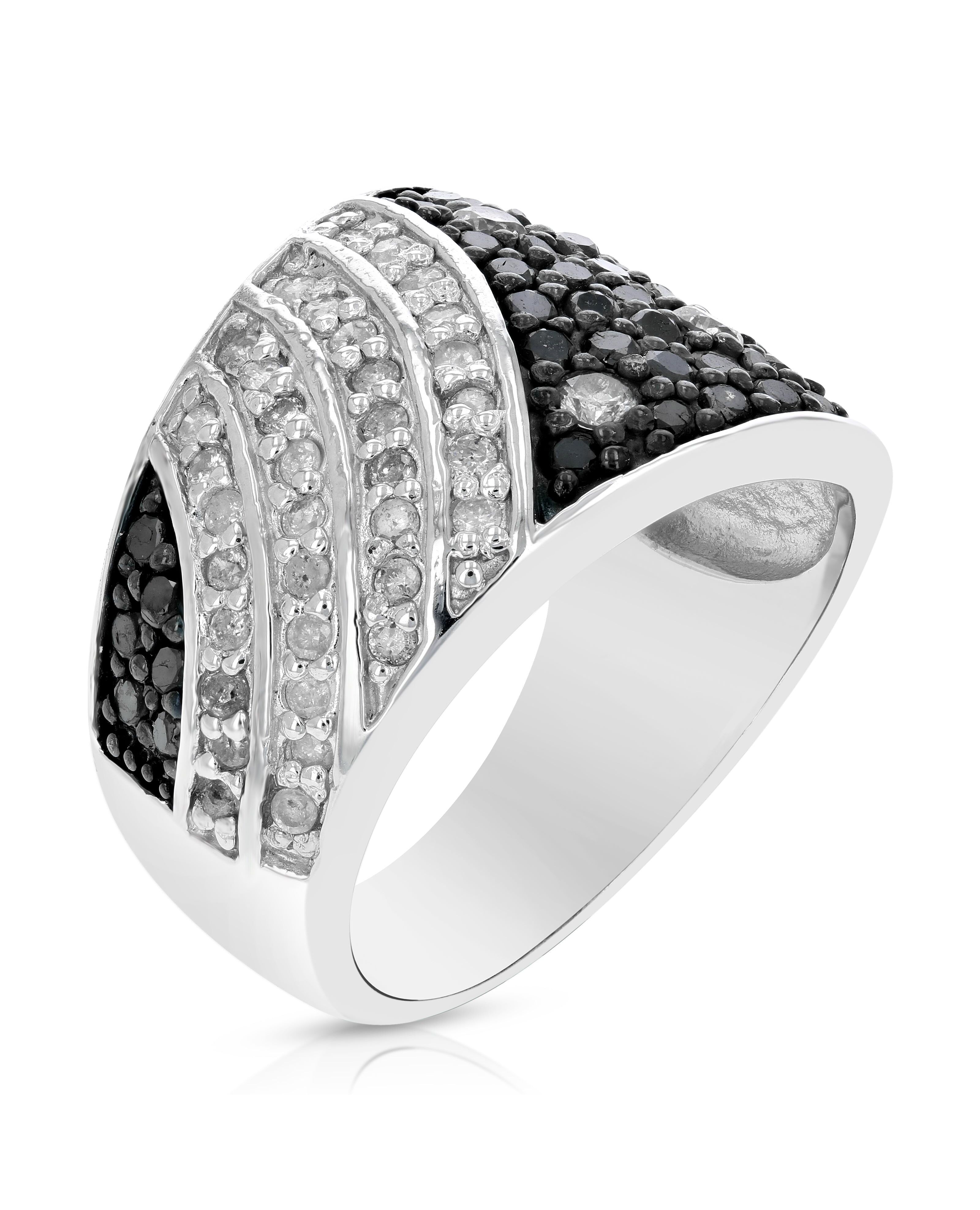 1.35 cttw Black and White Diamond Ring .925 Sterling Silver with Rhodium