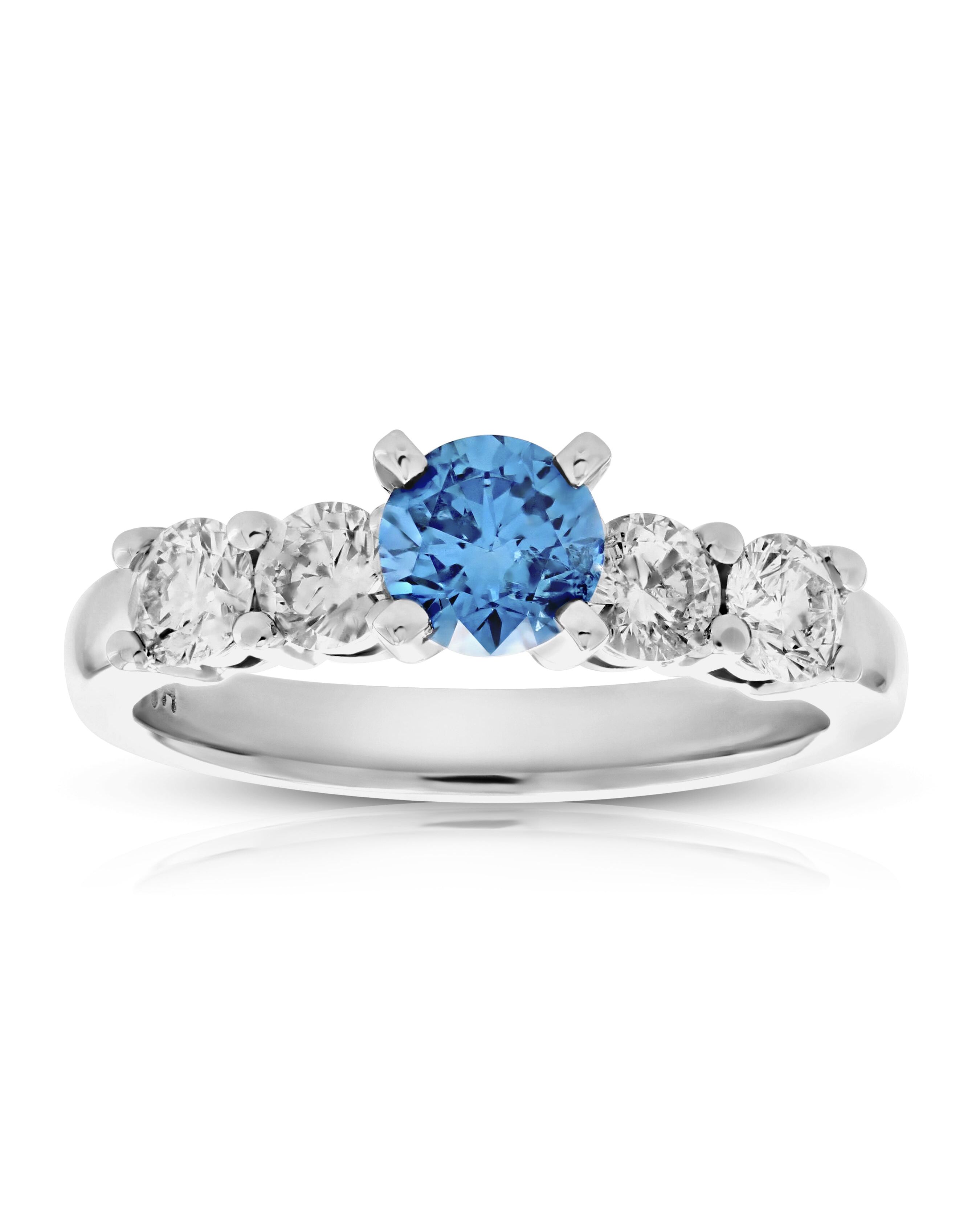 1.40 cttw Blue and White Diamond Engagement Ring 14K White Gold Bridal