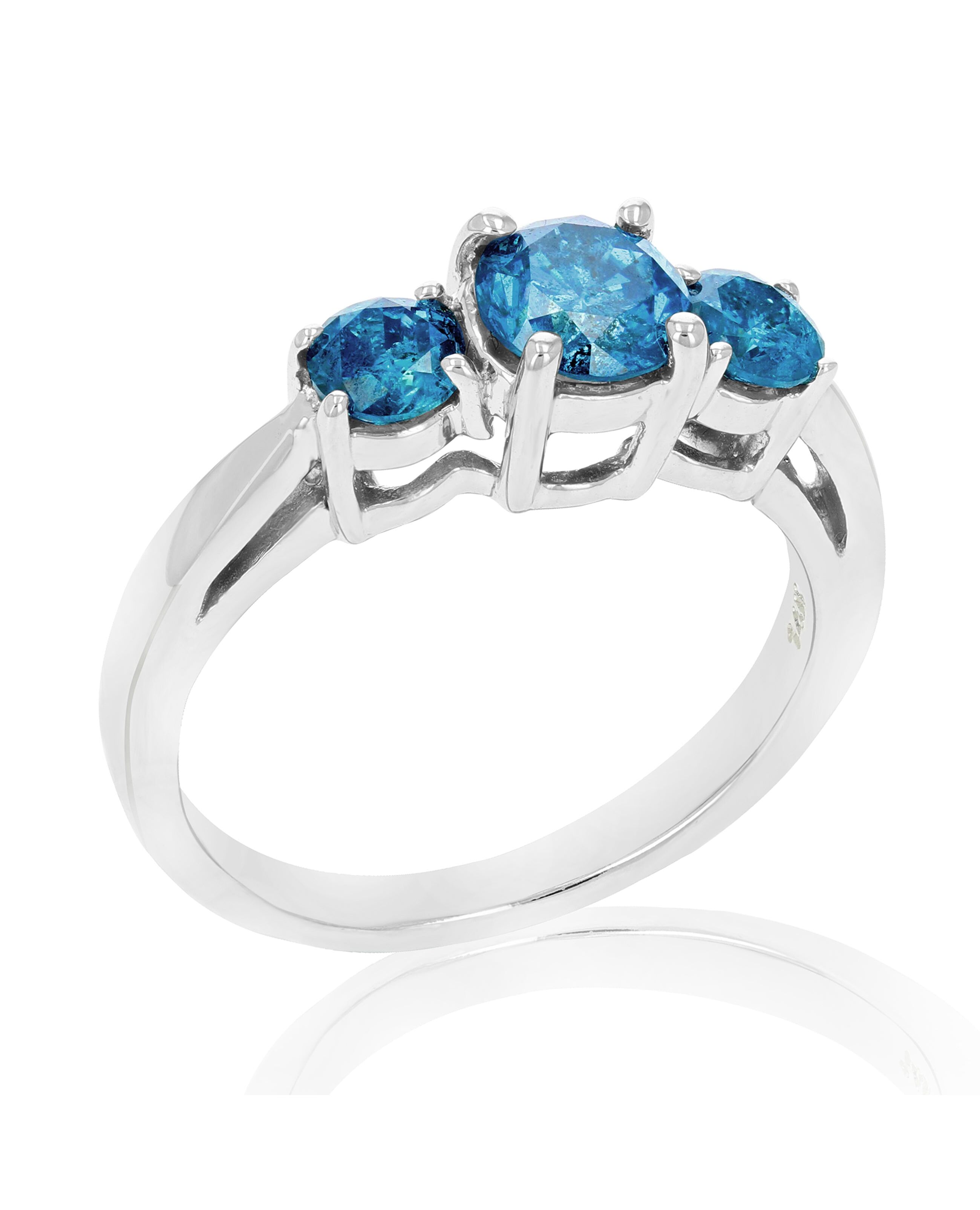 1.50 cttw 3 Stone Blue Diamond Engagement Ring in 14K White Gold Round