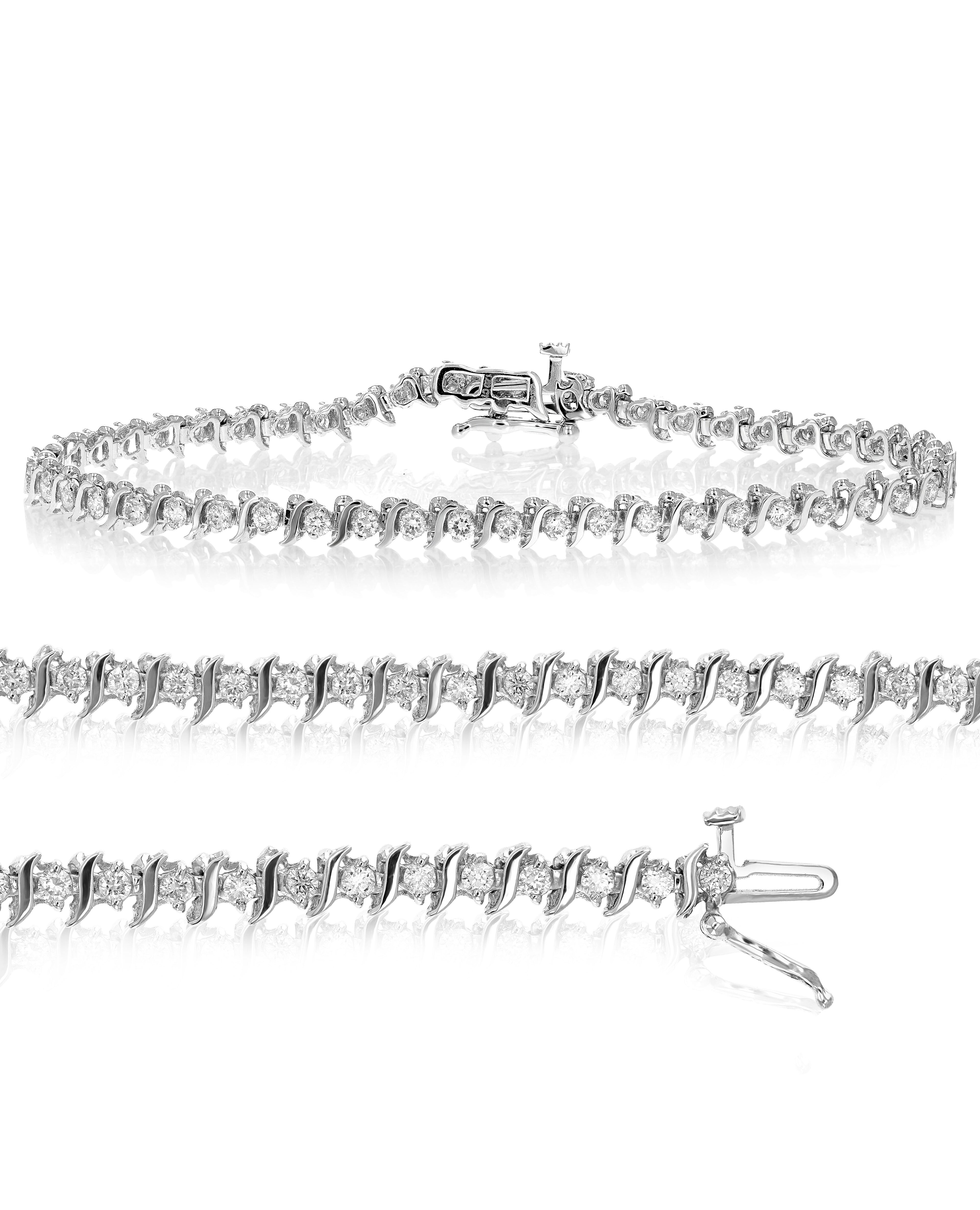 1.50 cttw Diamond Bracelet .925 Sterling Silver Classic S-Link Round 7 Inch