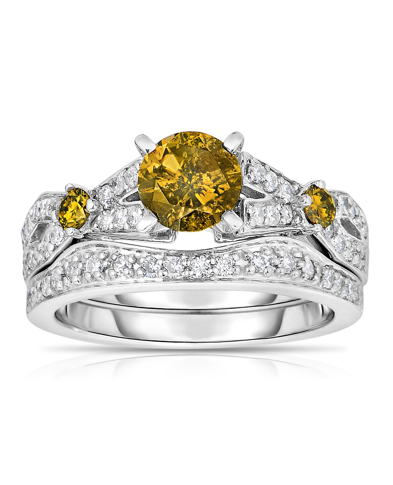 1.60 cttw 3 Stone Yellow and White Diamond Engagement Ring 14K White Gold
