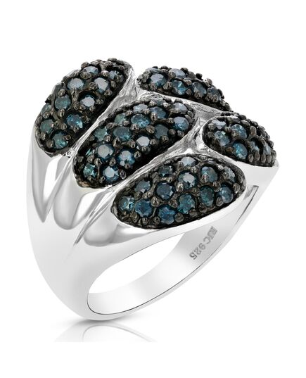 1.60 cttw Blue Diamond Ring .925 Sterling Silver with Rhodium Plating