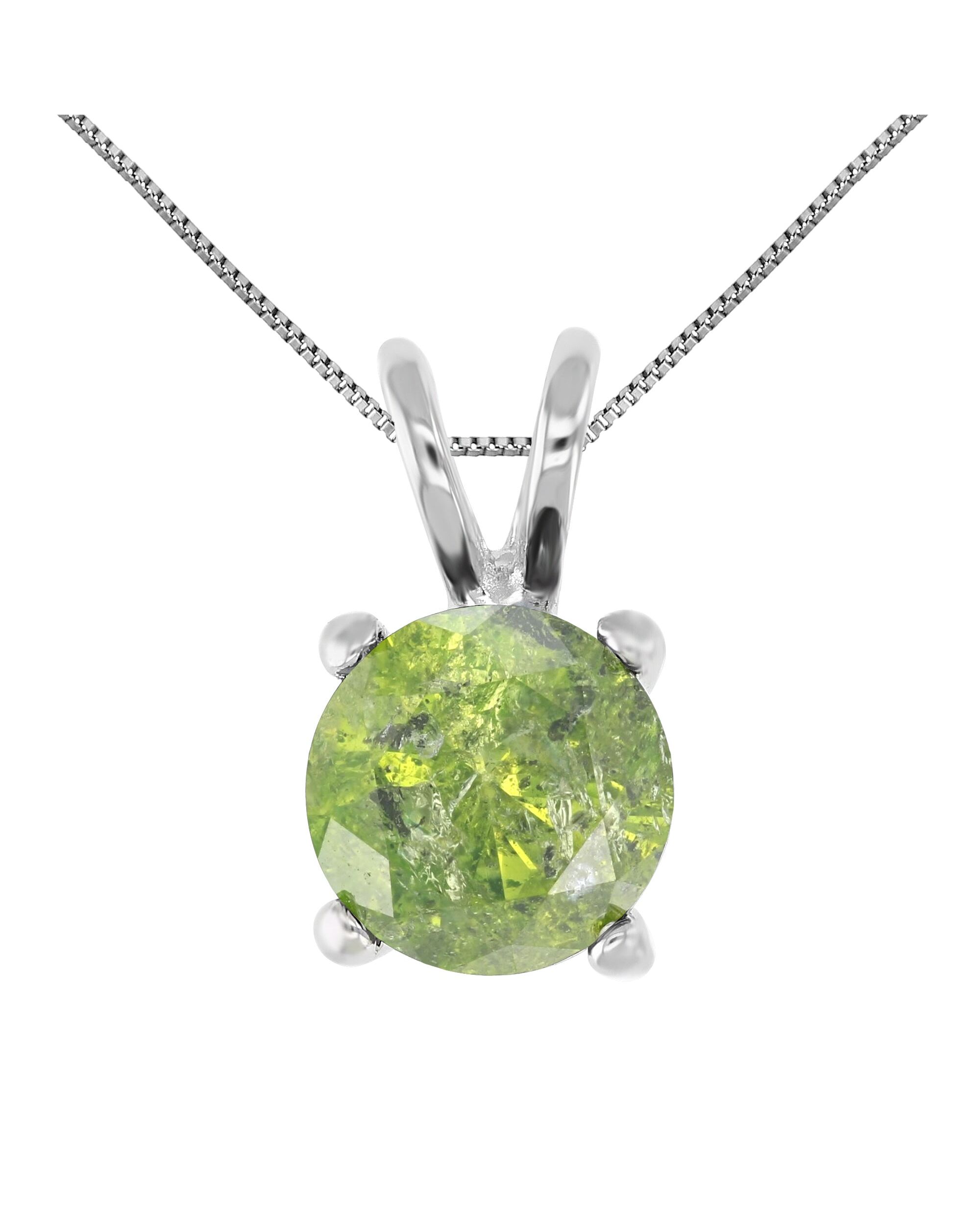 1.75 cttw Green Diamond Solitaire Pendant 14K White Gold Round with Chain