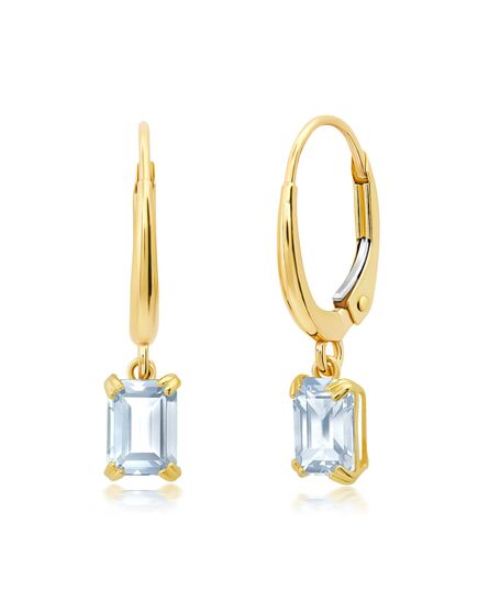 10k White or Yellow Gold Emerald Cut 6x4mm Gemstone Dangle Lever Back Earrings with Push Backs