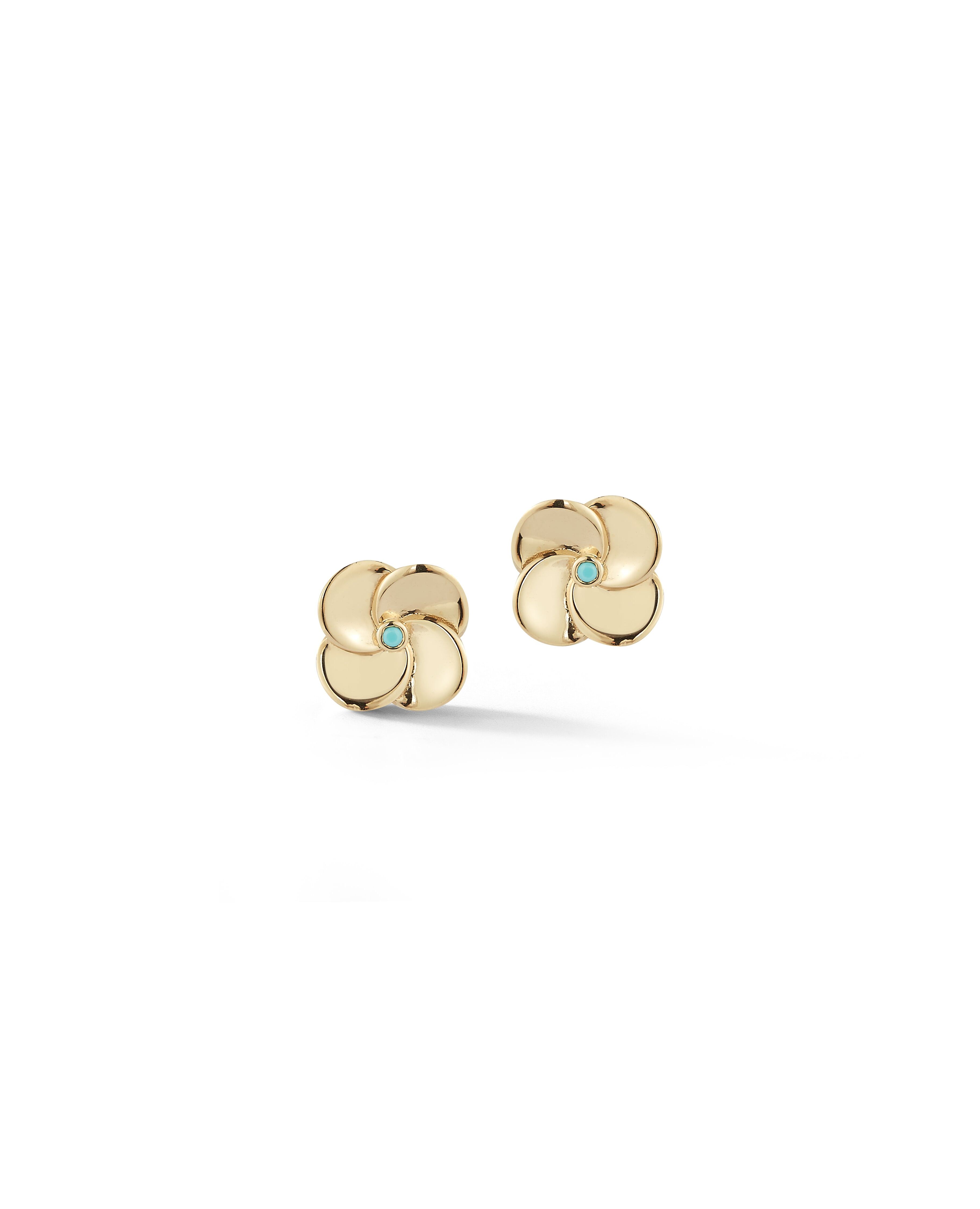 14K Gold & Turquoise Flower Stud Earrings