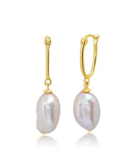 18K Yellow Gold Over Sterling Silver Vermeil Freshwater Cultured Pearl Hoops (11x14MM)