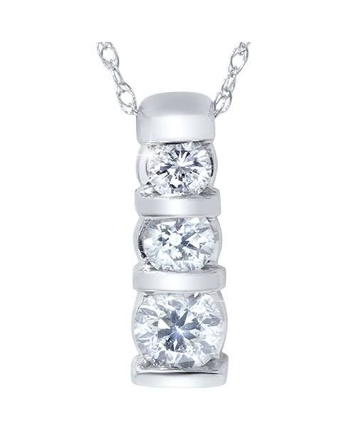 1ct 3-Stone Diamond Bar Set Pendant 14 Karat White Gold