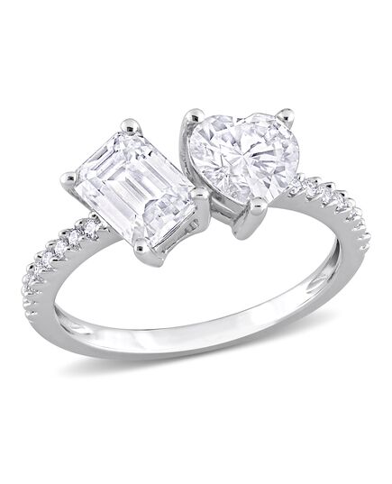 2 1/8 CT TGW Octagon Heart-Shape and Created Moissanite 2-Stone Ring in Sterling Silver