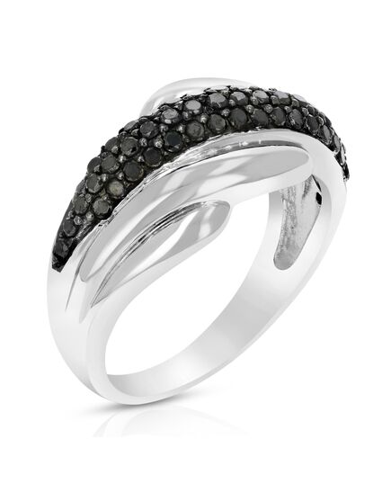 2/3 cttw Black Diamond Wedding Ring .925 Sterling Silver with Rhodium
