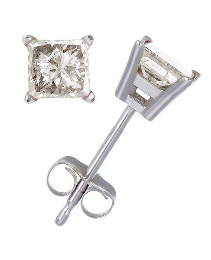 2/3 cttw Princess Cut Diamond Stud Earrings 10K White Gold 4 Prong with Push Backs