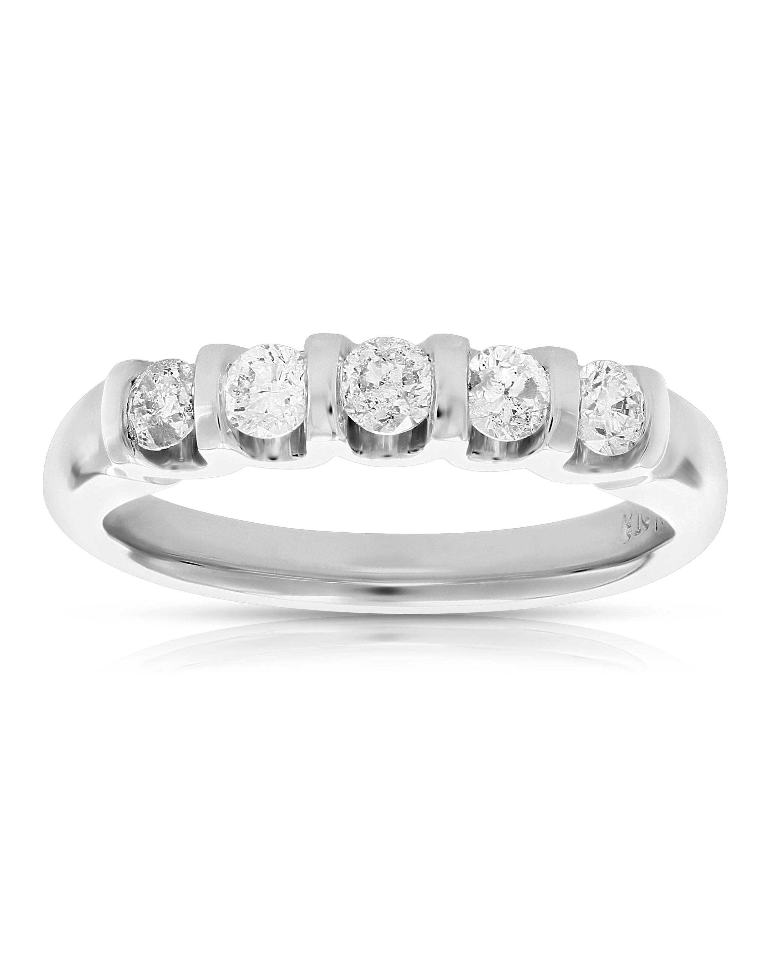 2/5 cttw Diamond 5 Stone Ring 14K White Gold Engagement Wedding Bridal