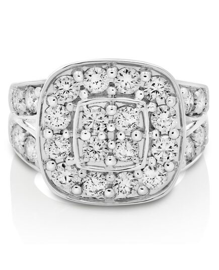 2 cttw Diamond Engagement Ring Cushion Shape with 2 Row 14K White Gold Bridal