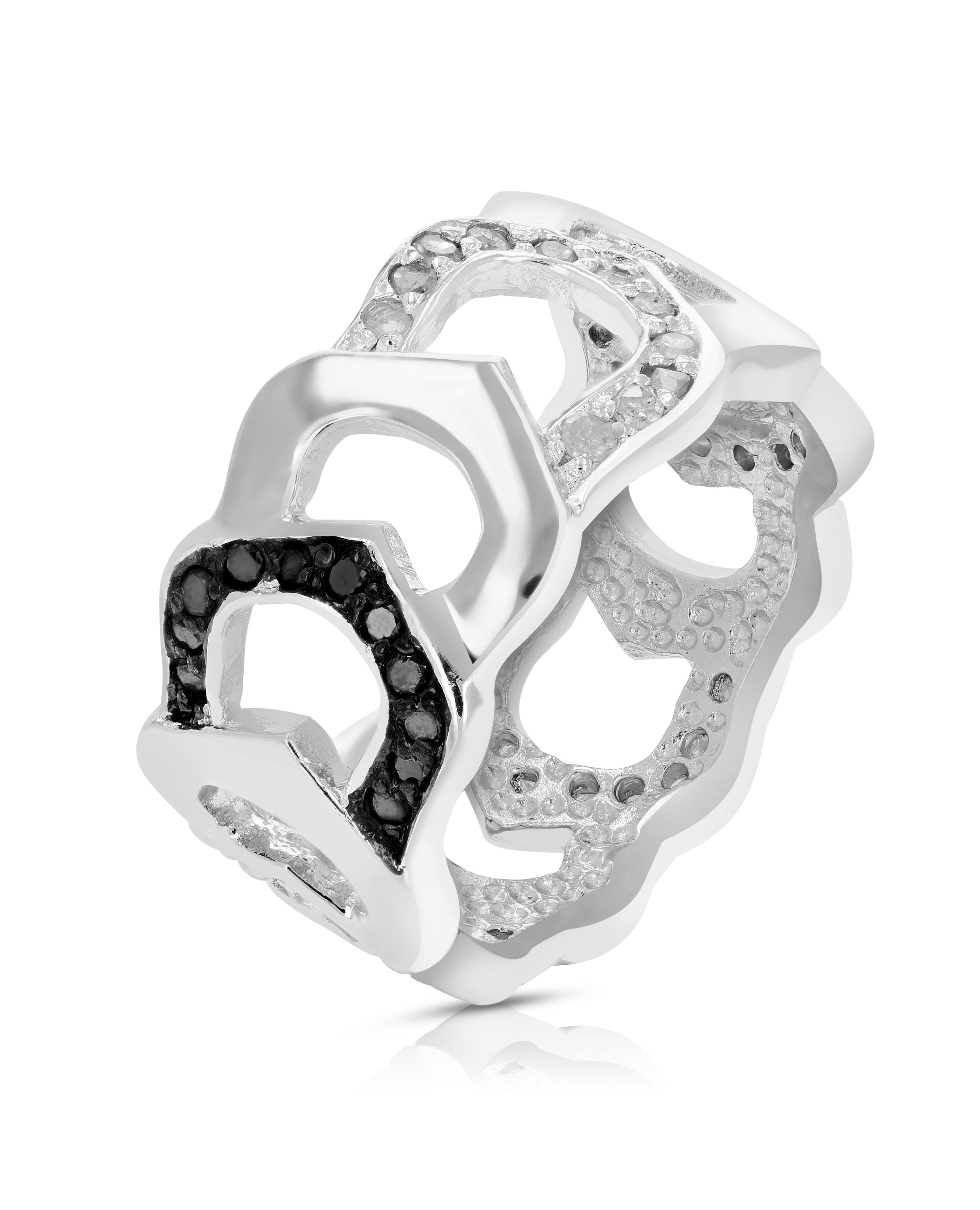 3/4 cttw Black and White Diamond Ring .925 Sterling Silver with Rhodium