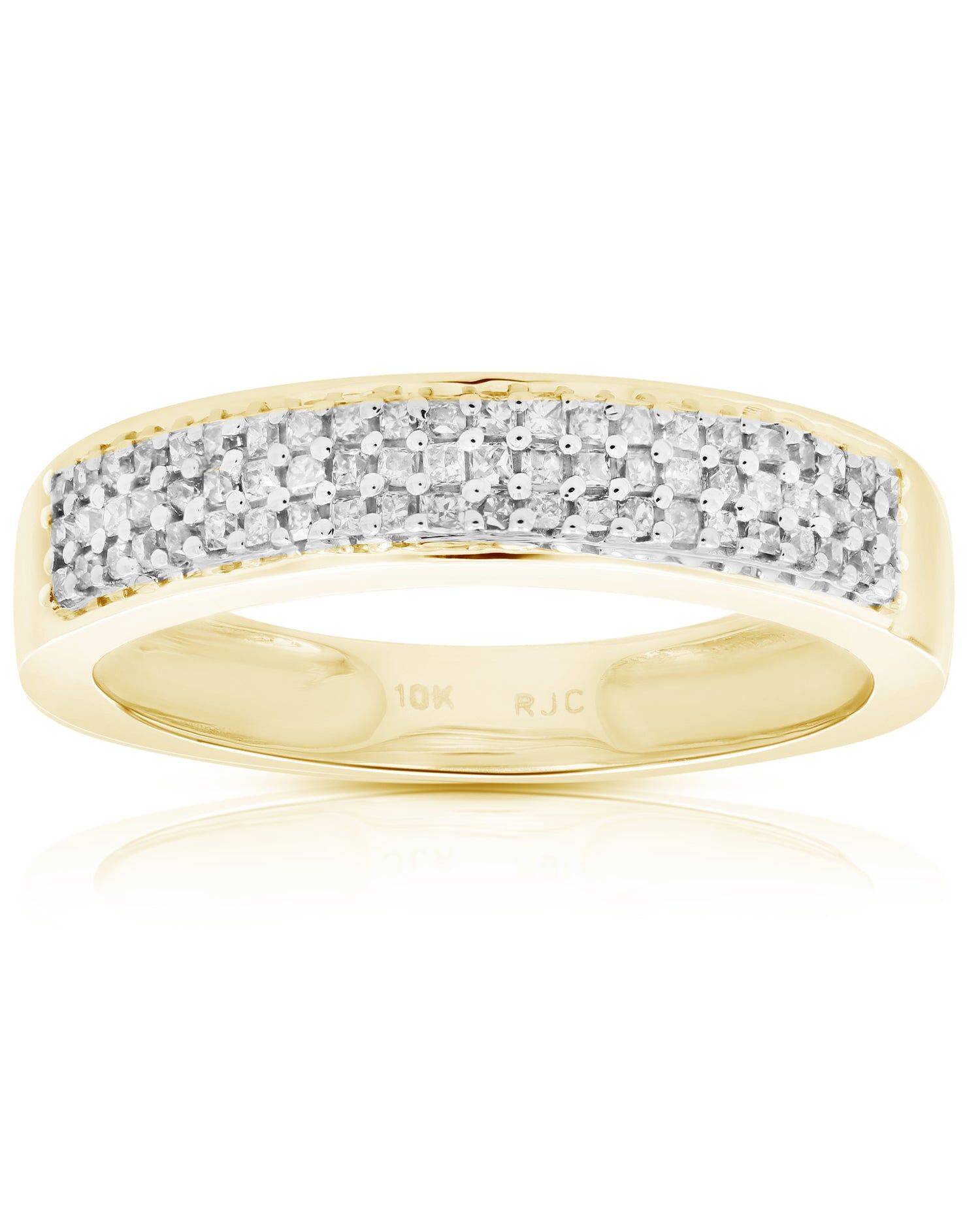 3/8 cttw 3 Row Princess Cut Diamond Wedding Band 10K Yellow Gold