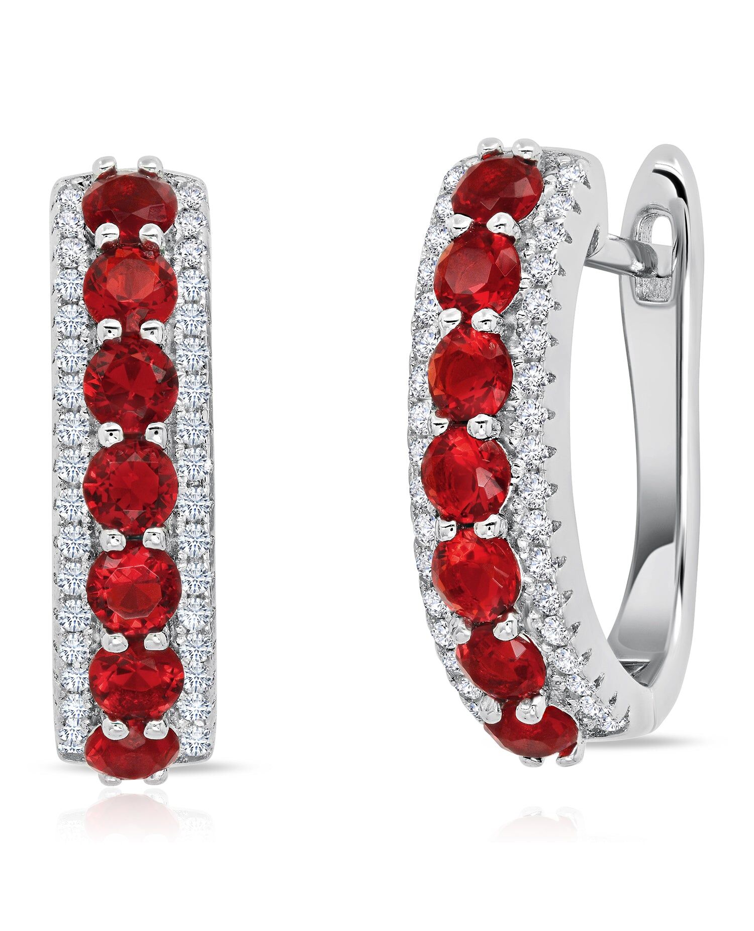 925 Sterling Silver Simulated Ruby Round Hoop Earrings, 0.75 inches