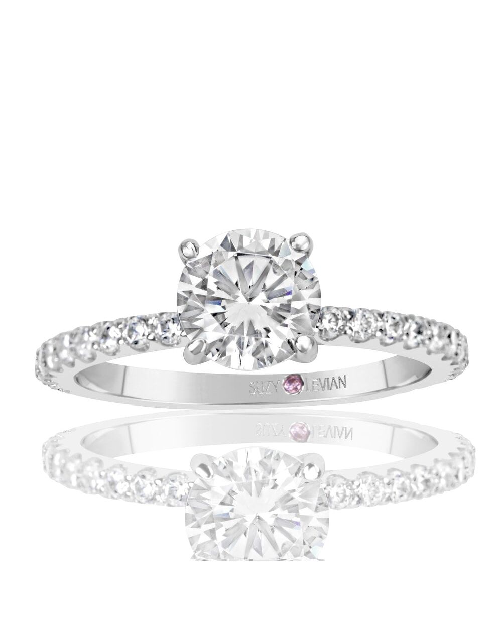 Suzy Levian Sterling Silver Round Cut Cubic Zirconia Bridal Engagement Ring