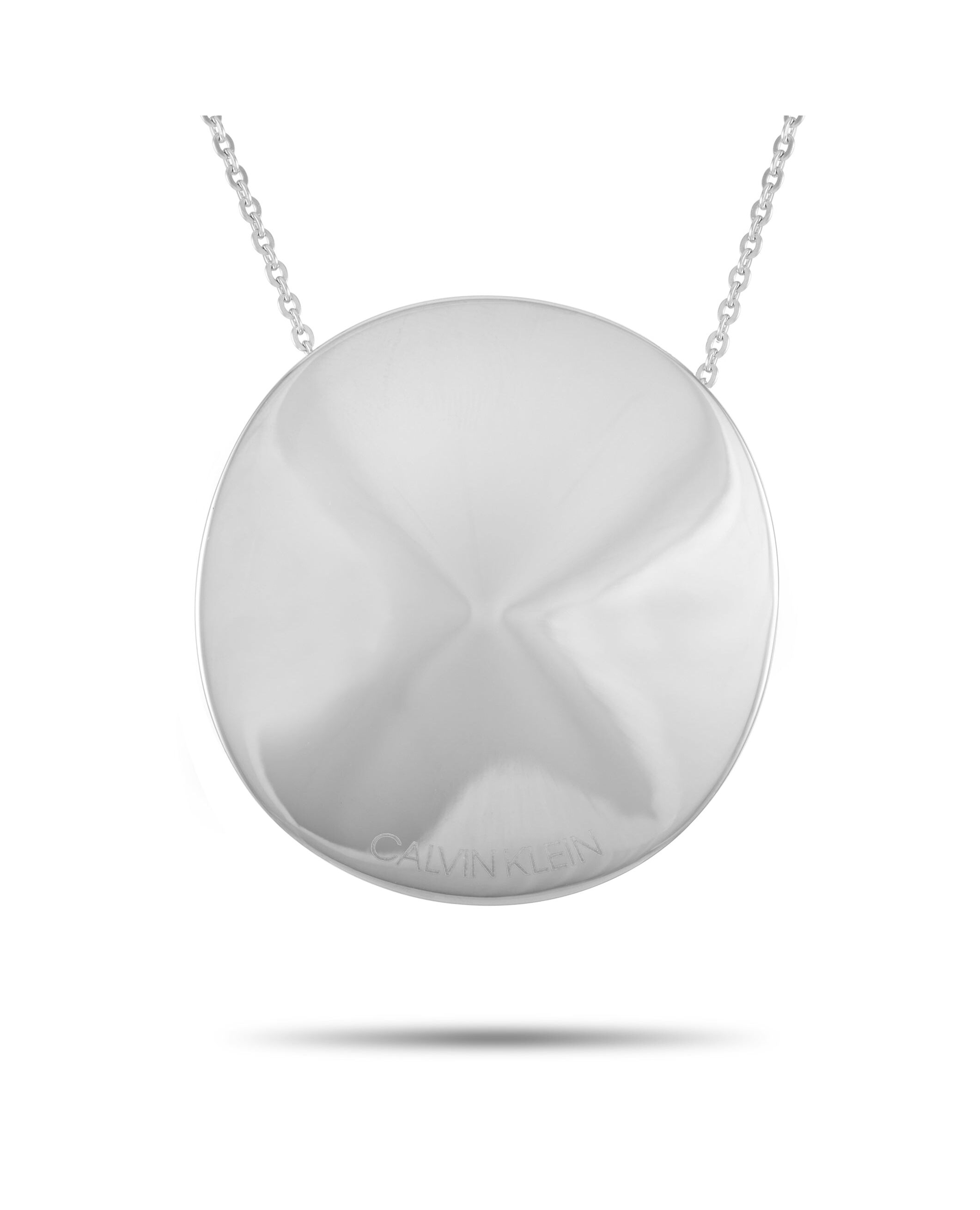 The Calvin Klein “Spinner” necklace is crafted from stainless steel and boasts a 28” chain with adjustable length. Attached onto the chain is a pendant that measures 0.75” in length and 0.75” in width.This jewelry piece is offered in brand new condition and includes the manufacturer’s box.