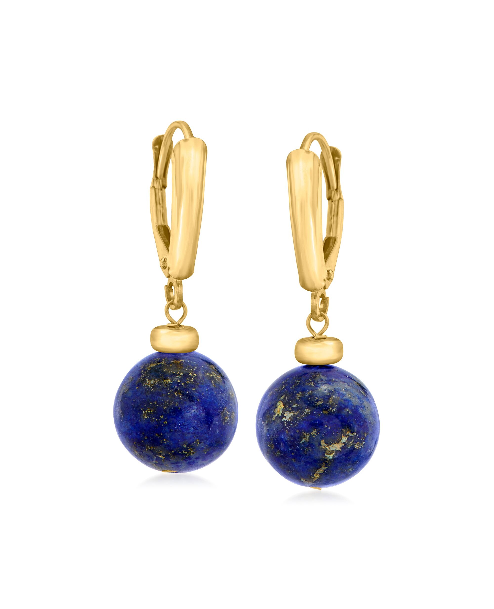 Canaria 10-11mm Lapis Bead Drop Earrings in 10kt Yellow Gold