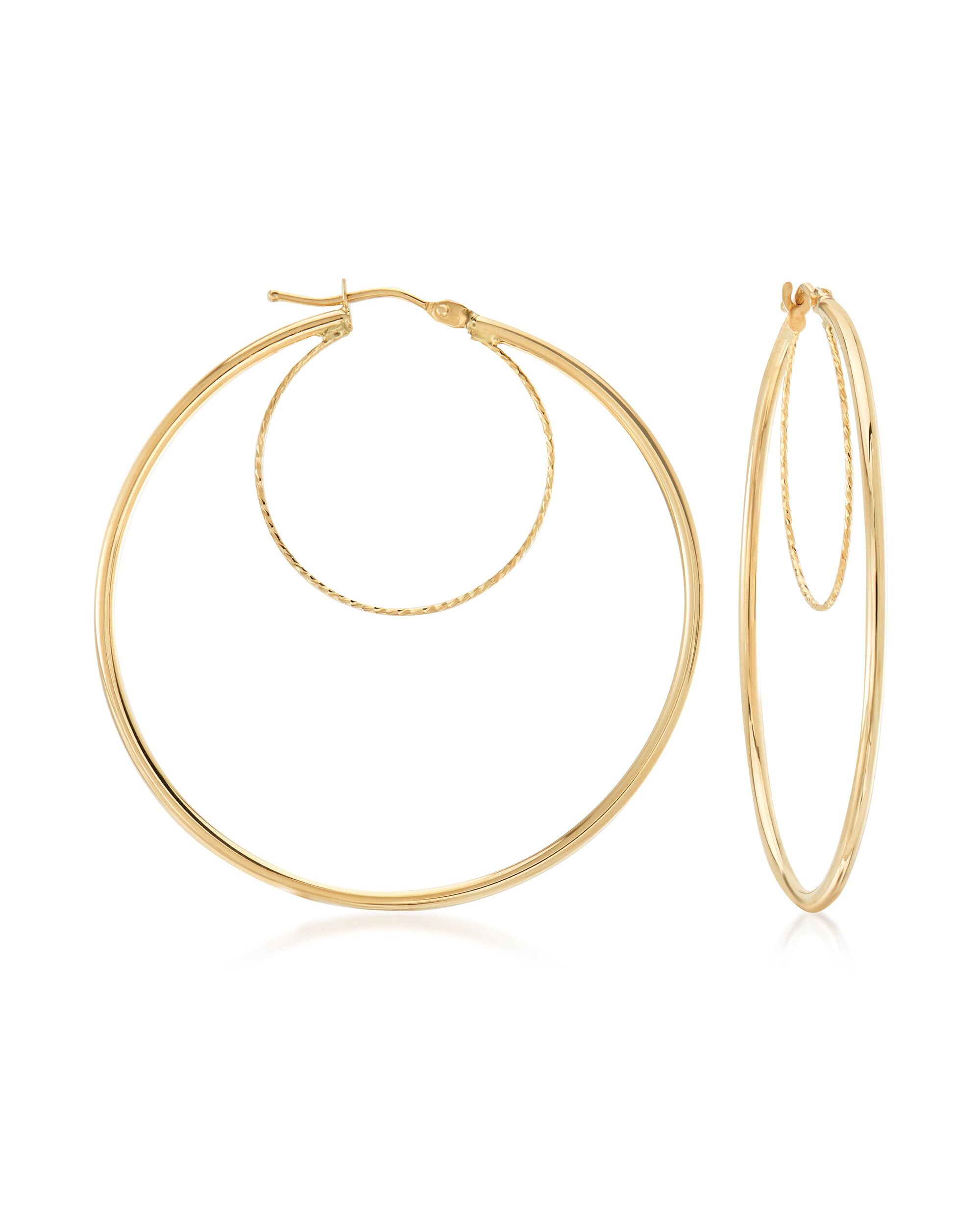 Canaria Italian 10kt Yellow Gold Textured and Polished Double-Hoop Earrings
