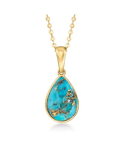 GENUINE 10KT GOLD — Turquoise pendant necklace in 10kt yellow gold. 8x12mm pear-shaped stabilized turquoise cabochon. Polished finish. 16 in. long. Pendant is 3/8 in. wide. 1mm cable chain. Springring clasp. Canaria fine jewelry is the affordable luxury you've been looking for. Perfect for everyday wear, these genuine 10kt gold wardrobe essentials are fashionable, fun and designed to last a lifetime. Timeless with a twist, Canaria is a collection of classics with unique presence and personality at a great value.Stone InformationGem Type 1 - Stabilized-TurquoiseStone Cut 1 - CabochonStone Color 1 - BlueStone Clarity 1 - BlueStone Shape 1 - Pear-ShapeStone Creation Method 1 - NaturalStone Treatment Method 1 - Dyed, StabilizedStone Weight 1 - 0 CaratsNumber Of Stones 1 - 1