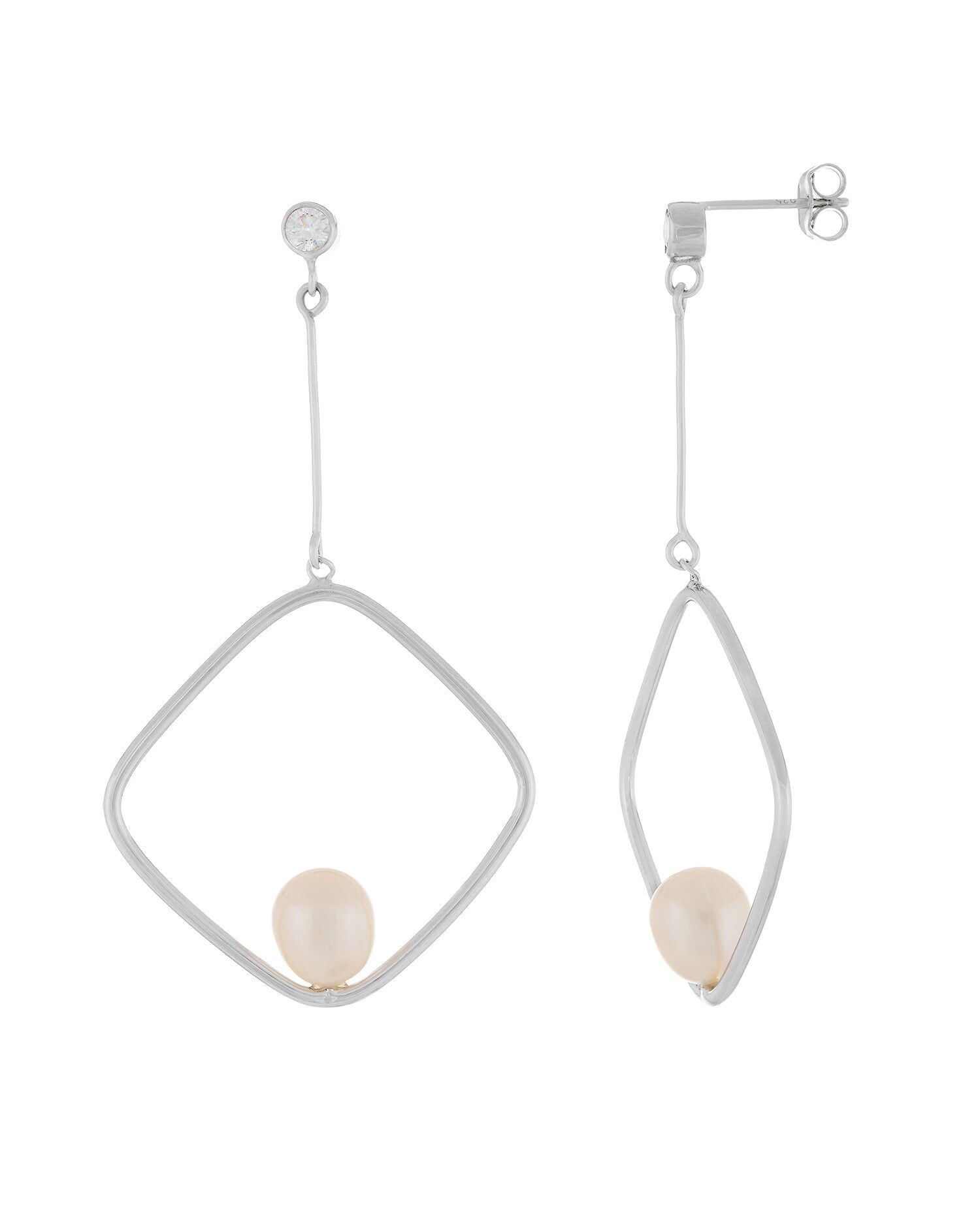Fancy Dangling Square Shaped Freshwater Pearl Earrings