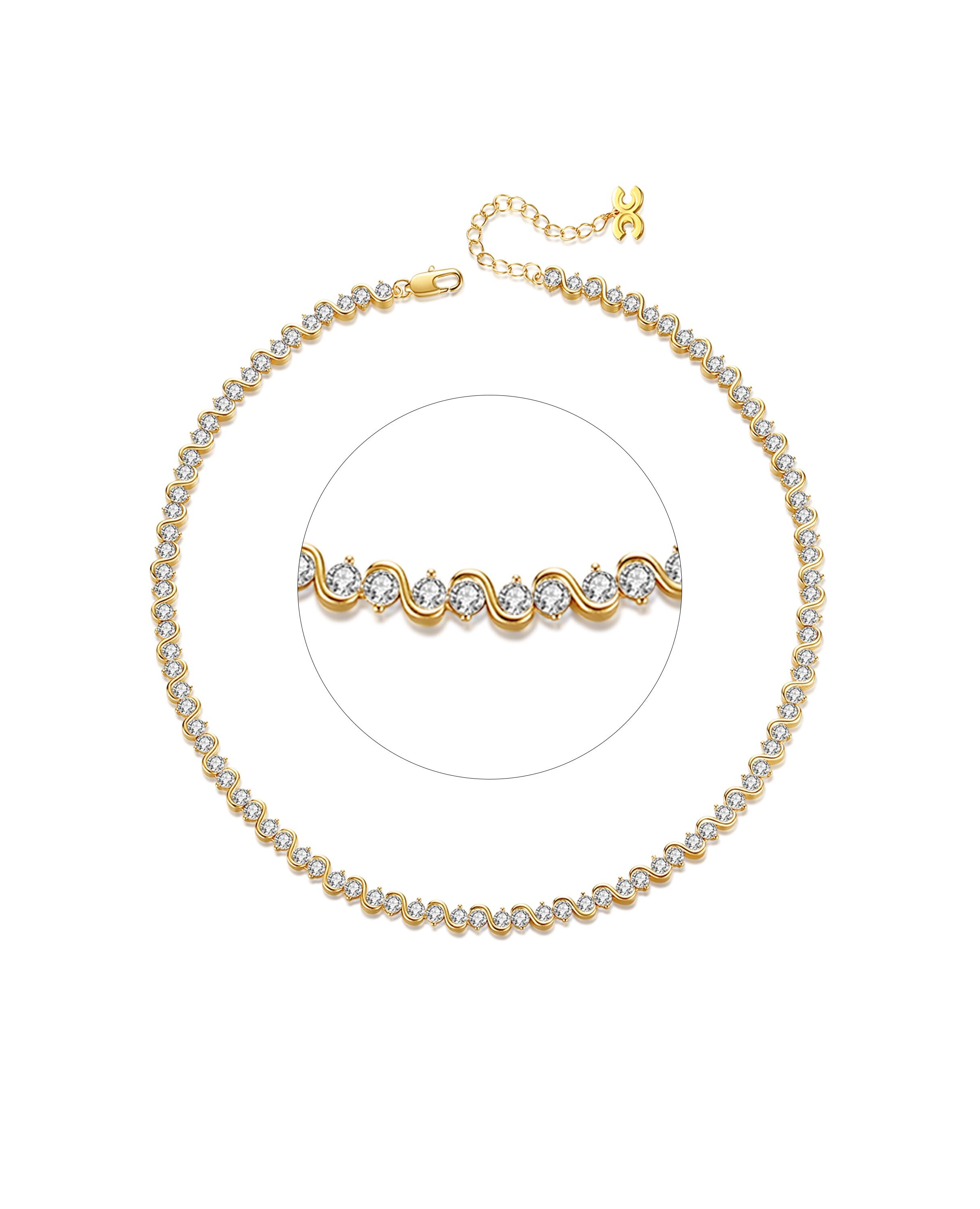 Gold Wave Zirconia Tennis Choker Necklace