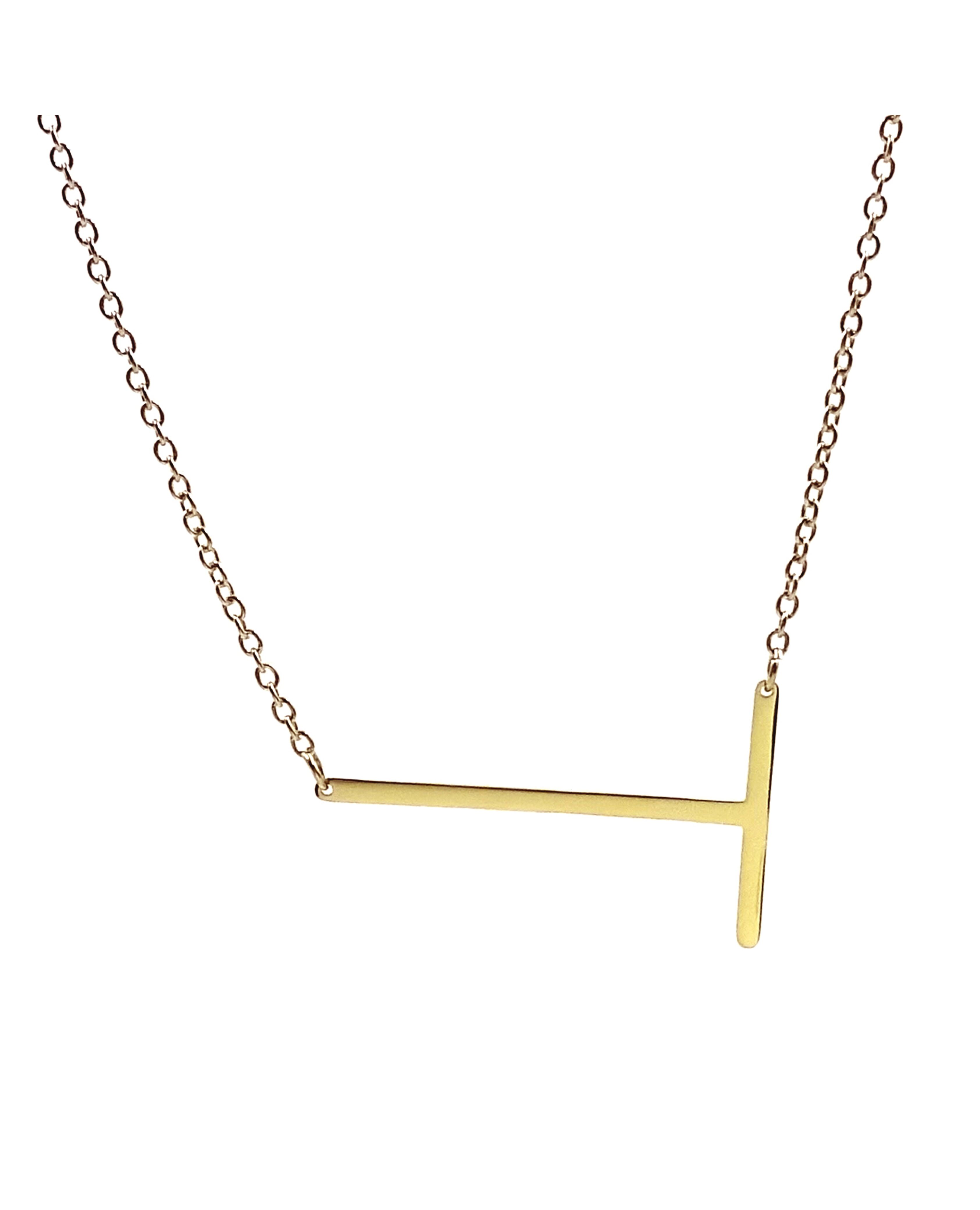 18K Yellow Gold timless Classic Initial Necklace. This initial pendant necklace is a statement in itself- wonderful to layer with -great finishing touch to your wardrobe. On Trend. 18" long adjustable to 16"
