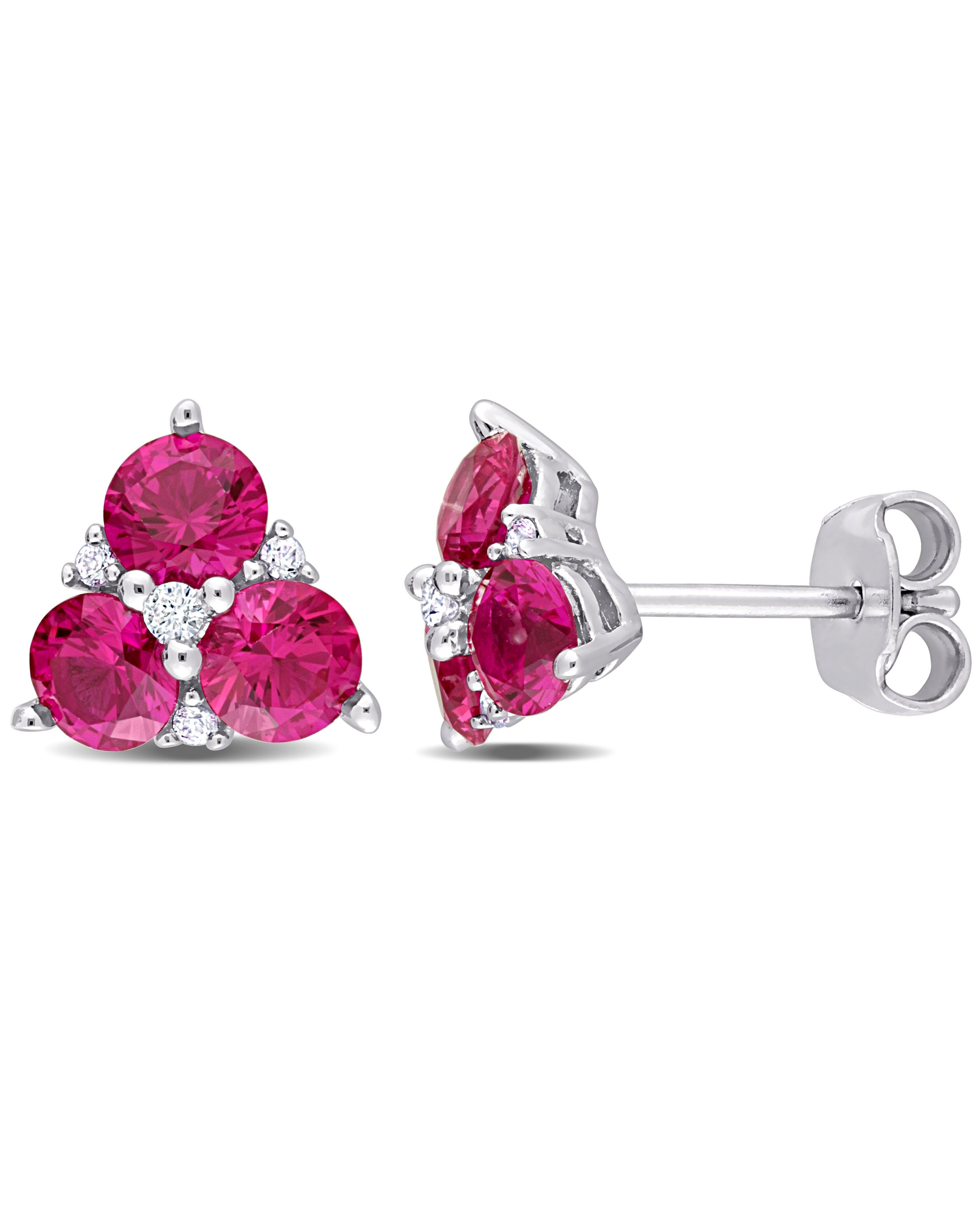 Mimi & Max 1 7/8 CT TGW Created Ruby and Created White Sapphire 3-Stone Earrings in Sterling Silver