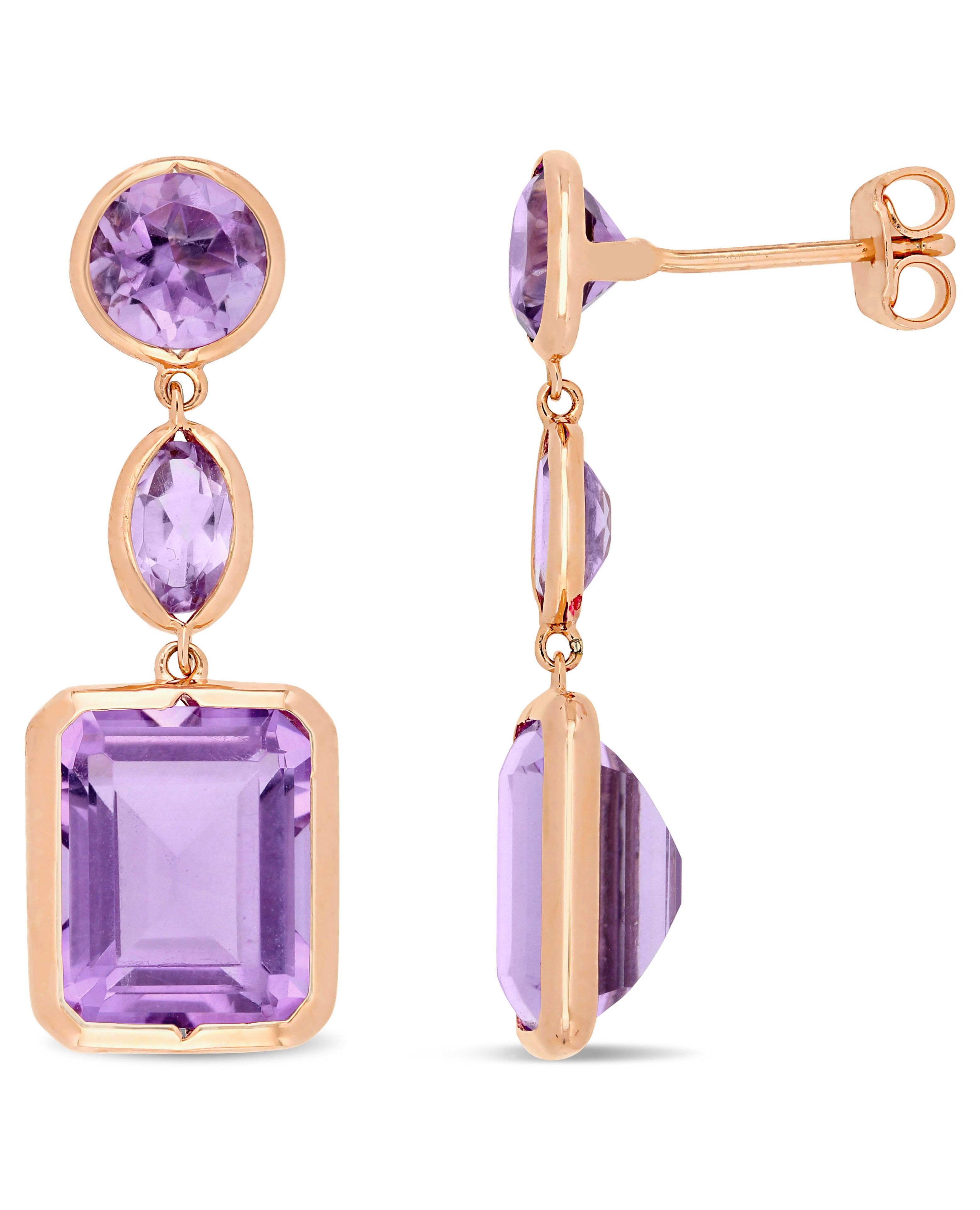 Mimi & Max 11 1/2 CT TGW Rose de France and Amethyst Link Earrings in Rose Plated Sterling Silver