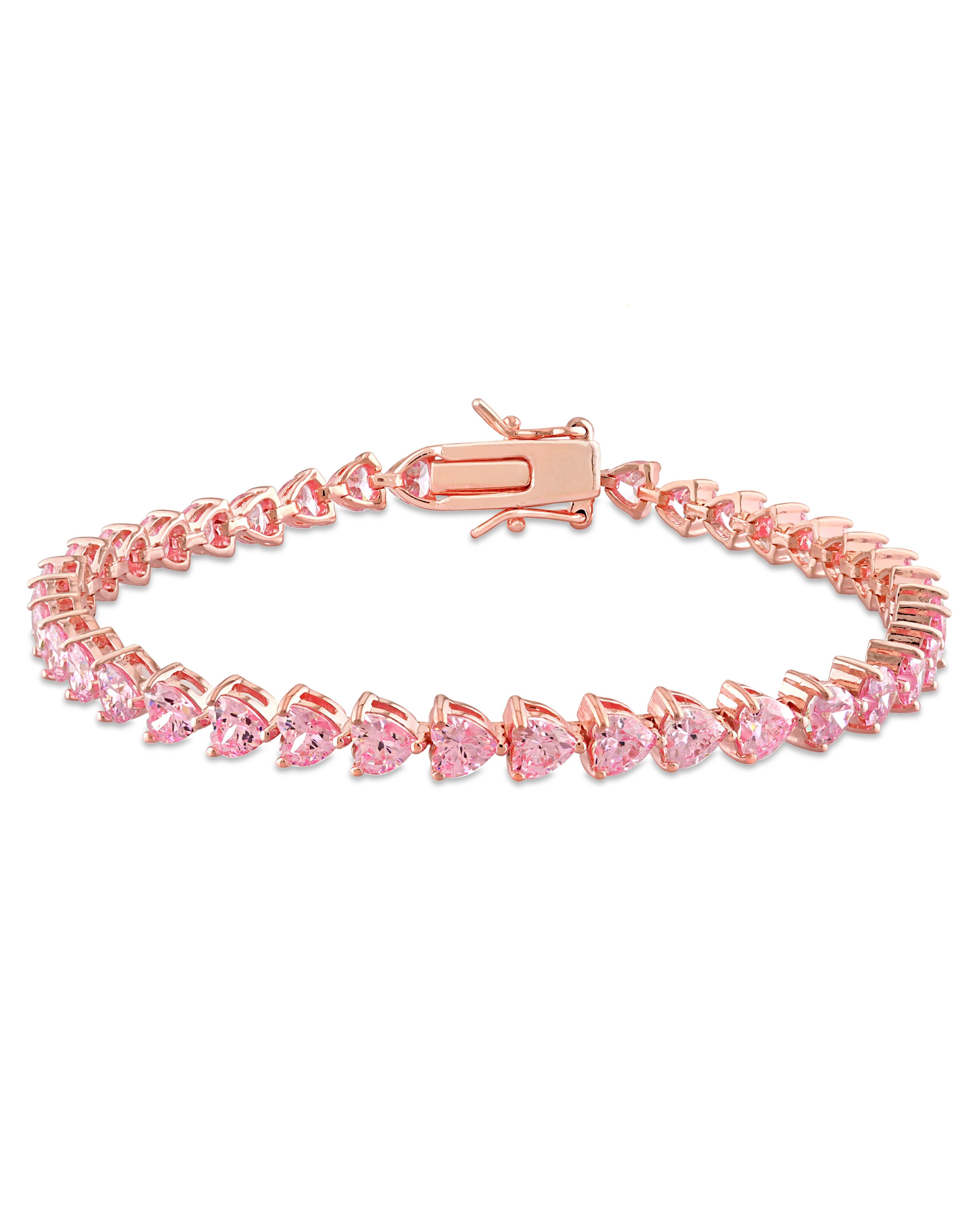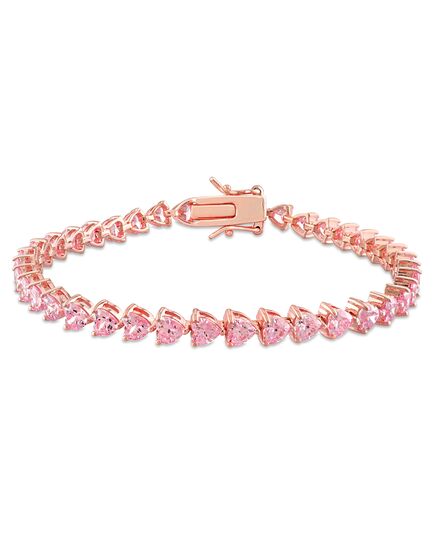 Mimi & Max 12 1/3 CT TGW Created Pink Heart-Cut Sapphire Tennis Bracelet in Rose Silver - 7.5 in.