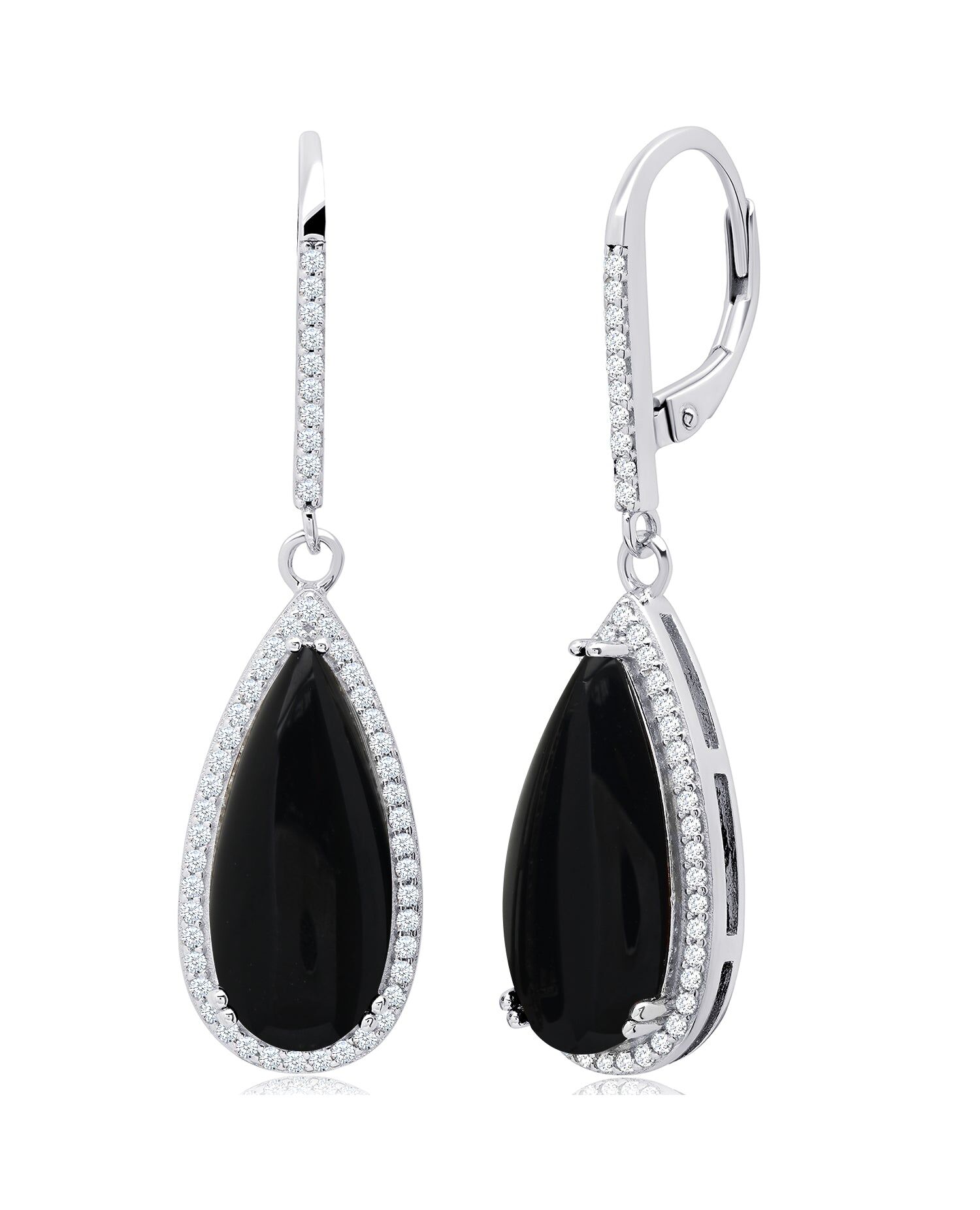 Pear Cut Gemstone Quartz and White Topaz Halo Dangle Leverback Earrings in Sterling Silver (18x8mm)