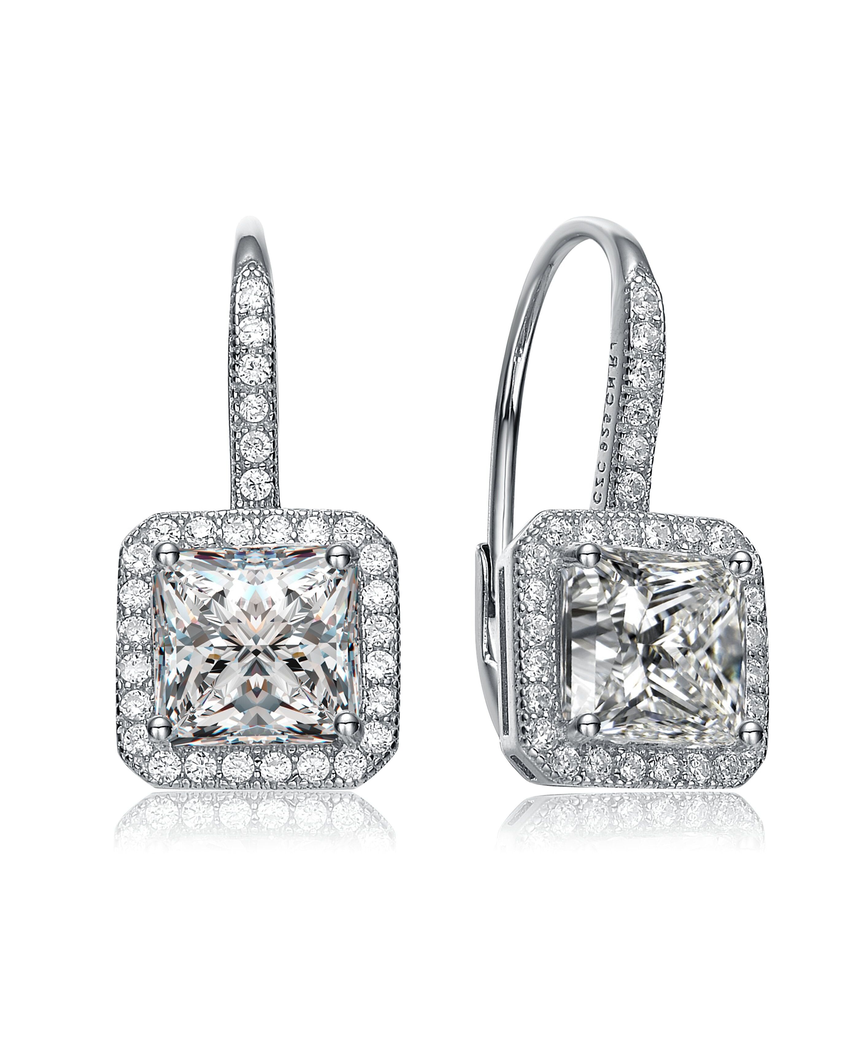 Ra White Gold Plated Cubic Zirconia Halo Leverback Earrings