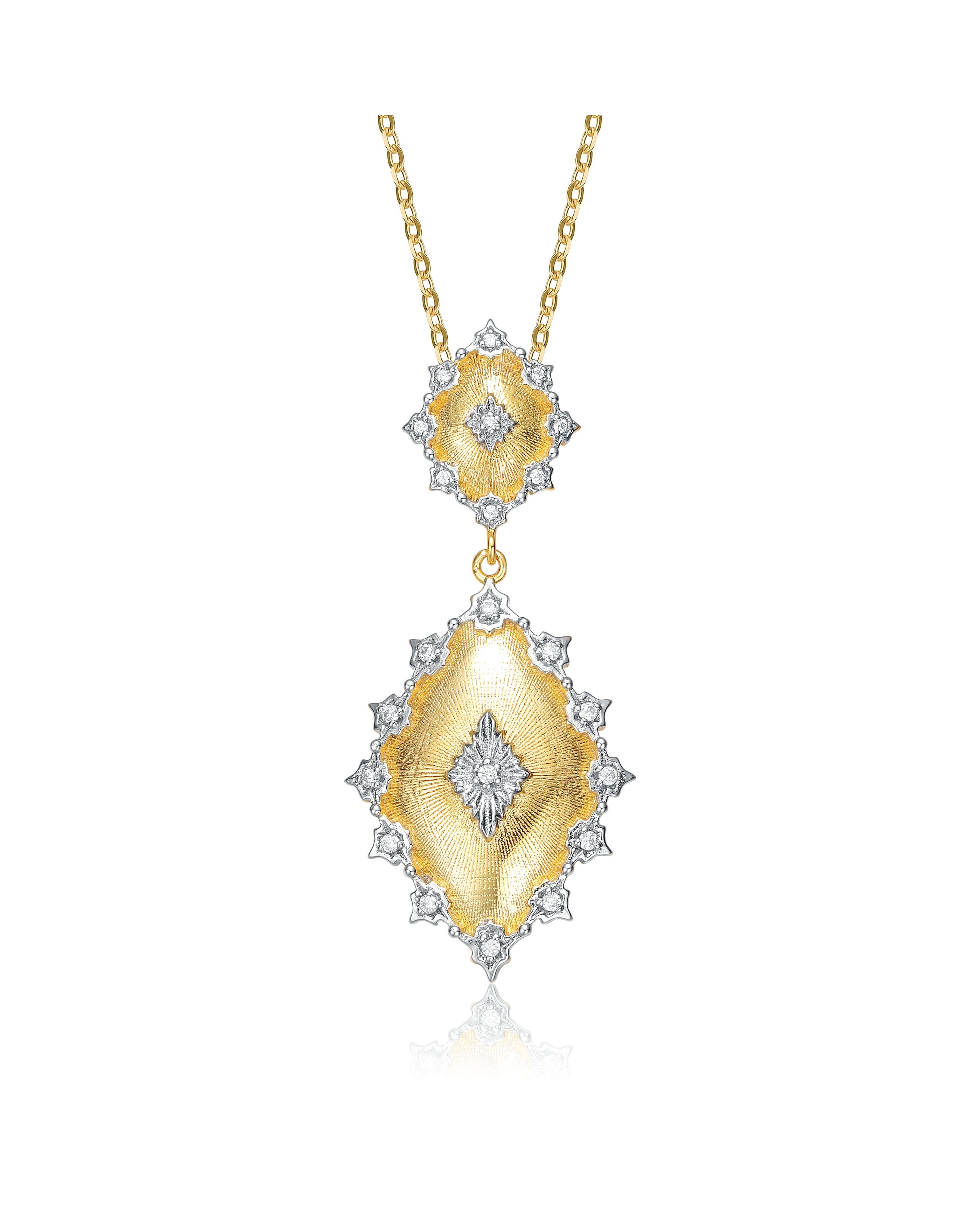 Rachel Glauber Rhodium And 14k Gold Plated Cubic Zirconia Pendant Necklace