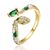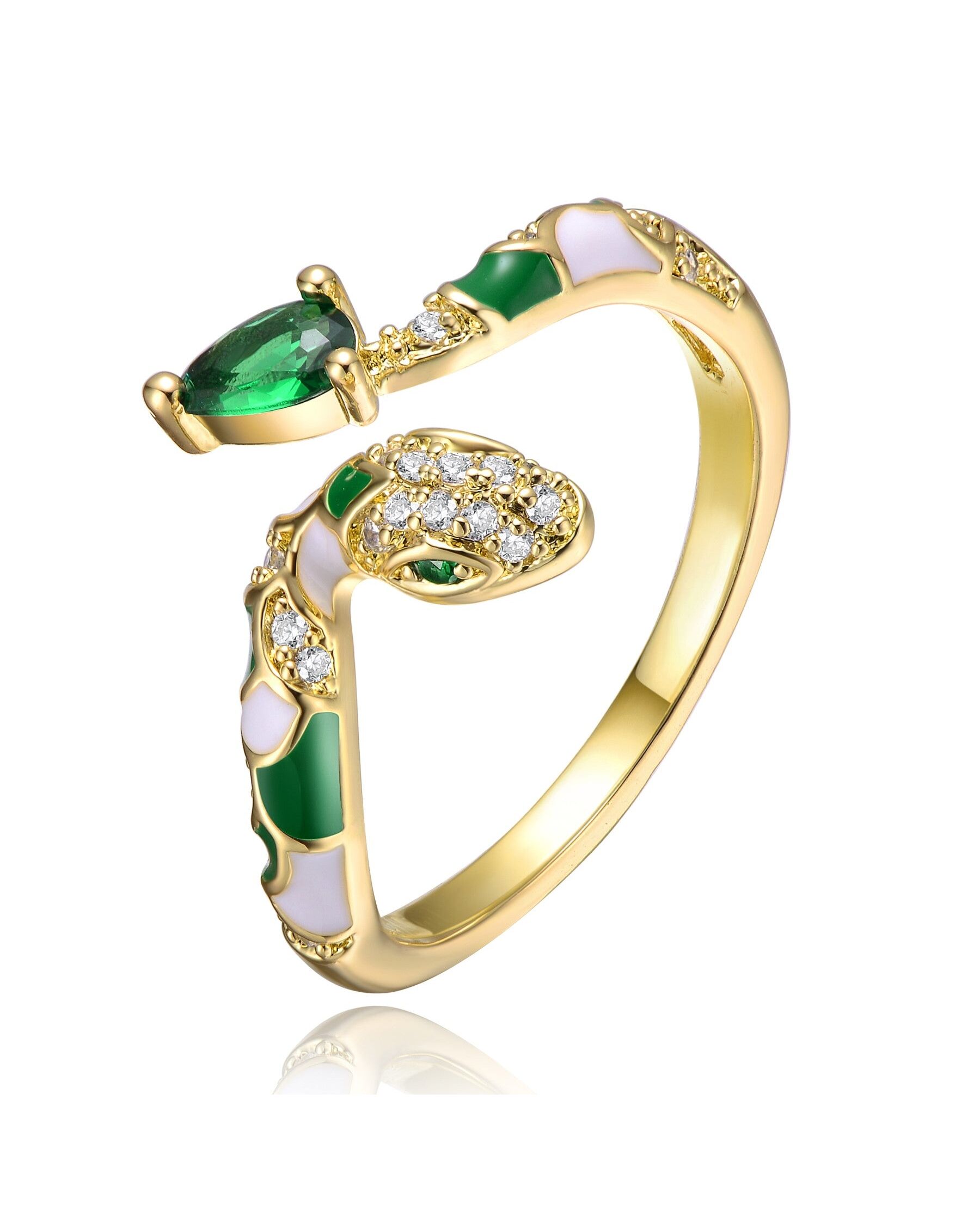 RG 14k Yellow Gold Plated with Emerald & Cubic Zirconia Coiled Snake Serpent Open Bypass Cuff Ring