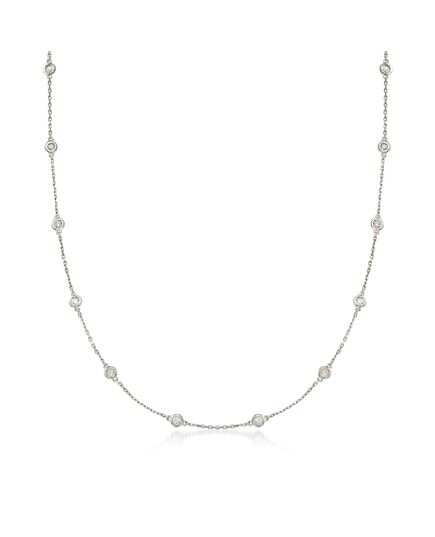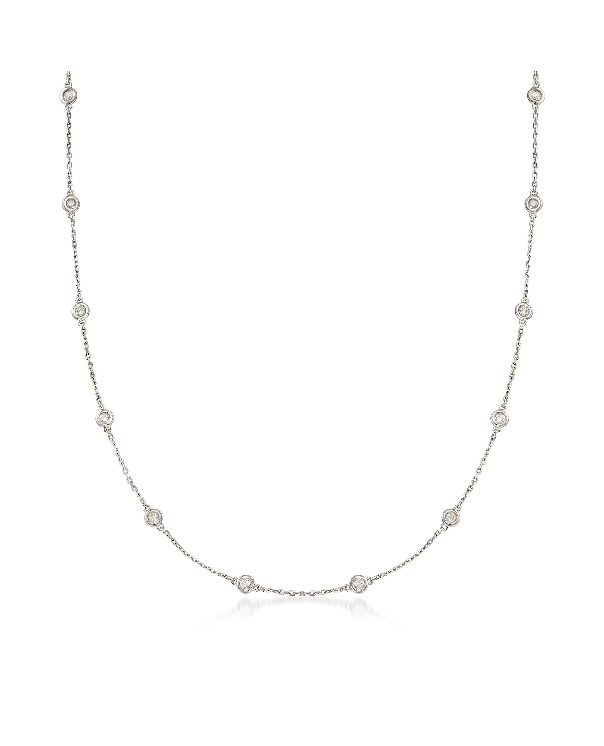 Established in 1952, Ross-Simons brings jewelry classics into the modern era. A classic design that never goes out of style. Sparkling with bezel-set 1.00 ct. t.w. round brilliant-cut diamonds stationed on a sterling silver cable chain, it's a must-have necklace for your collection. It's also perfect for layering with other chain styles. Lobster clasp, diamond station necklace. Each Ross-Simons item arrives in a fine jewelry presentation box. Shop Ross-Simons jewelry risk-free as all items include a 30-day, 100% money-back guarantee.Stone InformationGem Type 1 - DiamondStone Cut 1 - Good-CutStone Color 1 - I-JStone Clarity 1 - I3Stone Shape 1 - Round-ShapeStone Creation Method 1 - NaturalStone Treatment Method 1 - Not-TreatedStone Weight 1 - 1.00-2.00 CaratsNumber Of Stones 1 - 14-28
