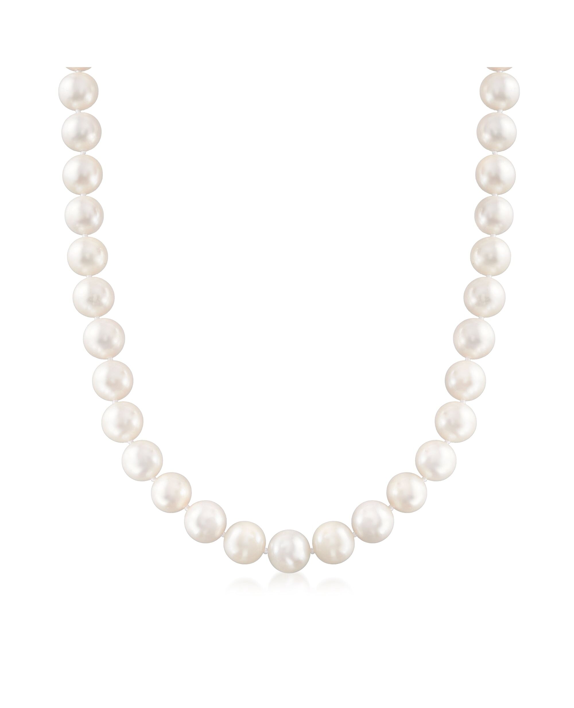 At Ross-Simons, we recognize the style power of versatile classics. A simple, beautiful strand of pearls will always be in style. Our collection includes traditional princess, matinee and opera lengths, in sizes ranging from demure to dramatic. This strand of 10-11mm cultured freshwater pearls is hand-strung and finished with a fluted 14kt yellow gold ball clasp. Each Ross-Simons item arrives in a fine jewelry presentation box. Shop Ross-Simons jewelry risk-free as all items include a 30-day, 100% money-back guarantee.Pearl InformationPearl Type 1 - Freshwater-CulturedPearl Minimum Color 1 - WhitePearl Lustre 1 - Medium-LusterPearl Shape 1 - OvalPearl Uniformity 1 - GoodPearl Surface Blemishes 1 - Moderately BlemishedPearl Stringing Method 1 - Moderately BlemishedSize Per Pearl 1 - 10-11mmNumber Of Pearls 1 - 10-11mm