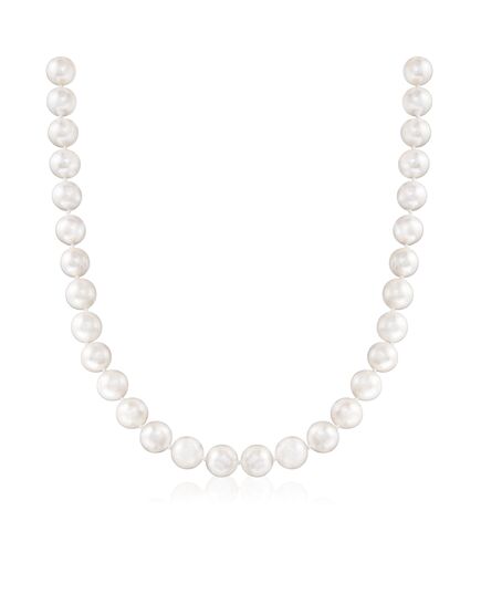 Ross-Simons travels the world to find beautiful, high-quality styles at the best prices. A classic pearl necklace is always the right choice. Boasting a beautifully styled strand of 10-11mm cultured freshwater pearls fastened with a polished sterling silver magnetic clasp. This easy-to-use necklace will be your new favorite in your jewelry box! White pearl necklace. Each Ross-Simons item arrives in a fine jewelry presentation box. Shop Ross-Simons jewelry risk-free as all items include a 30-day, 100% money-back guarantee.Pearl InformationPearl Type 1 - Freshwater-CulturedPearl Minimum Color 1 - WhitePearl Lustre 1 - Medium-LusterPearl Shape 1 - Semi-RoundPearl Uniformity 1 - GoodPearl Surface Blemishes 1 - Moderately BlemishedPearl Stringing Method 1 - Moderately BlemishedSize Per Pearl 1 - 10-11mmNumber Of Pearls 1 - 36