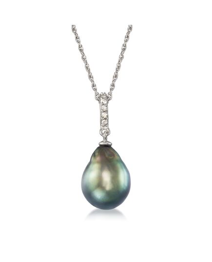 Ross-Simons 11-12mm Black Cultured Tahitian Pearl Pendant Necklace With . Diamond in Sterling Silver