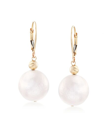 Ross-Simons 13-14mm Cultured Pearl Drop Earrings in 14kt Yellow Gold