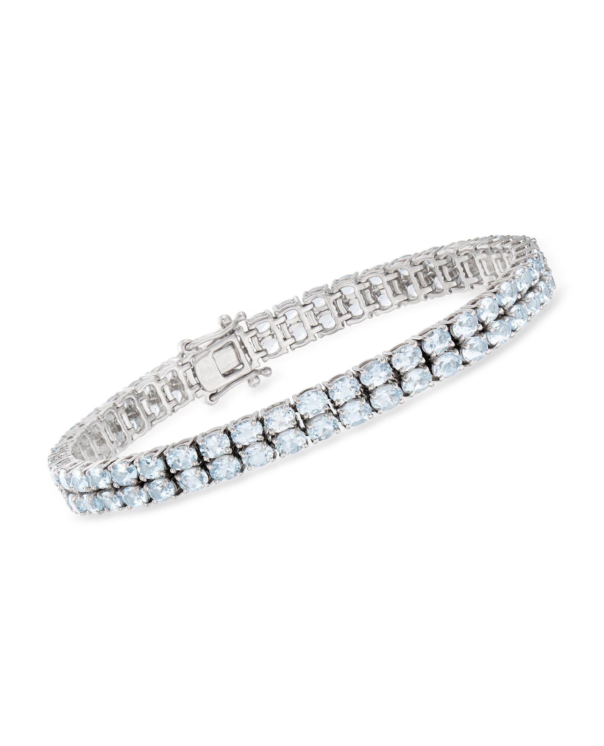 Ross-Simons 13.00- Aquamarine 2-Row Tennis Bracelet in Sterling Silver