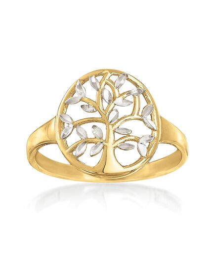 A trusted jeweler in 1952, Ross-Simons is dedicated to quality and value. Connect to the world around you with this cut-out tree of life ring. Symbolic of the interconnectivity between all living things, the emblem branches out in 14kt yellow and white gold. Detailed with diamond-cut and polished finishes. 1/2" wide. 14kt white and yellow gold tree of life ring. Each Ross-Simons item arrives in a fine jewelry presentation box. Shop Ross-Simons jewelry risk-free as all items include a 30-day, 100% money-back guarantee.