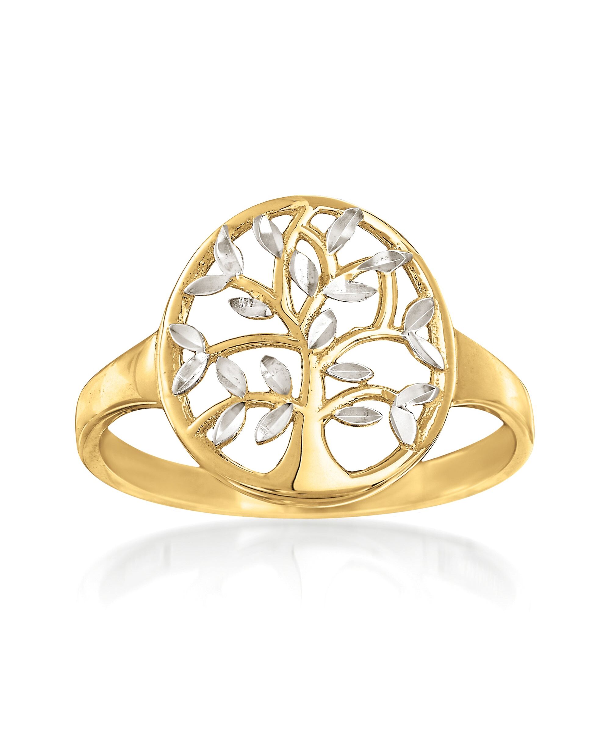 A trusted jeweler in 1952, Ross-Simons is dedicated to quality and value. Connect to the world around you with this cut-out tree of life ring. Symbolic of the interconnectivity between all living things, the emblem branches out in 14kt yellow and white gold. Detailed with diamond-cut and polished finishes. 1/2" wide. 14kt white and yellow gold tree of life ring. Each Ross-Simons item arrives in a fine jewelry presentation box. Shop Ross-Simons jewelry risk-free as all items include a 30-day, 100% money-back guarantee.