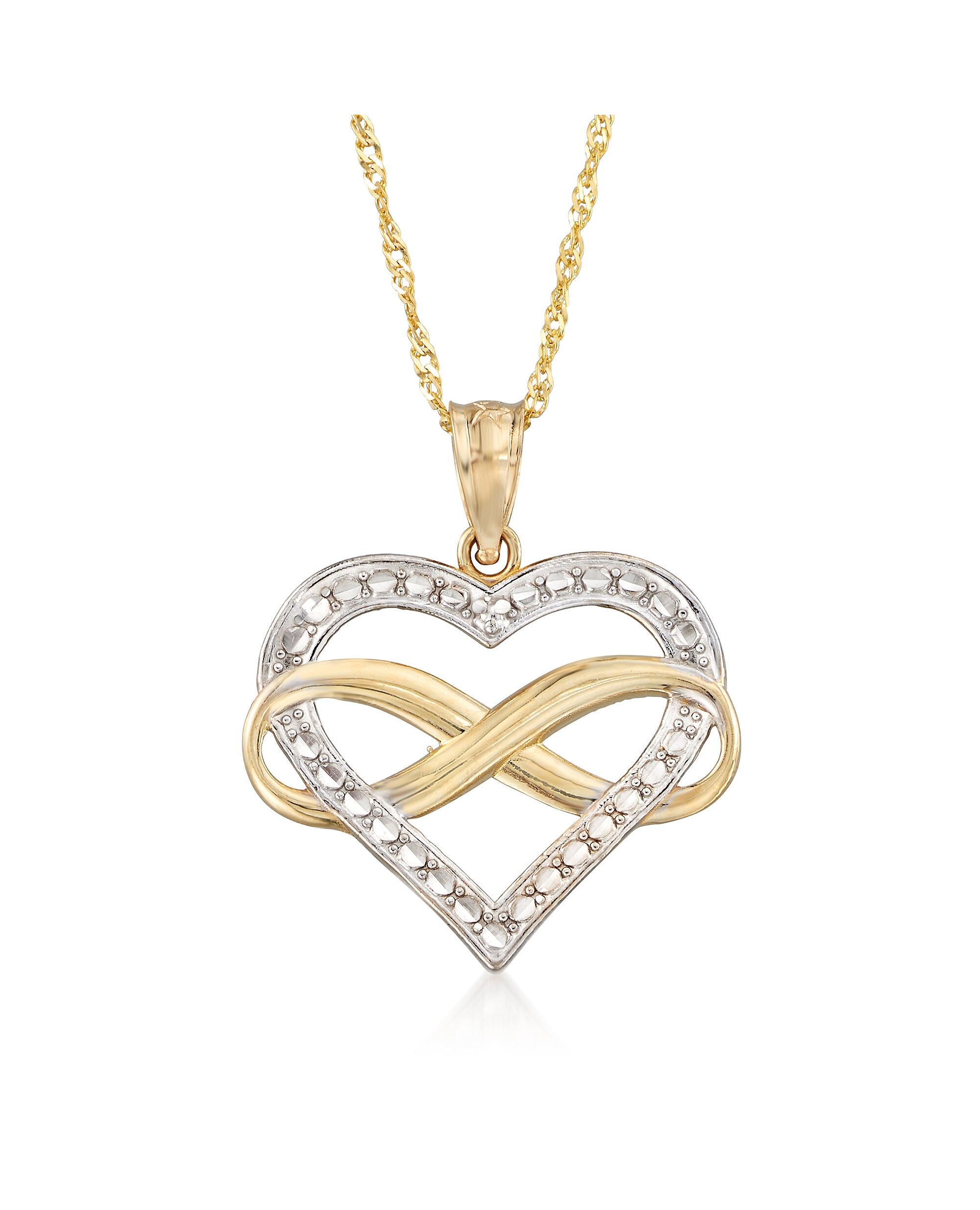 Ross-Simons 14kt 2-Tone Gold Diamond-Cut Infinity Heart Pendant Necklace