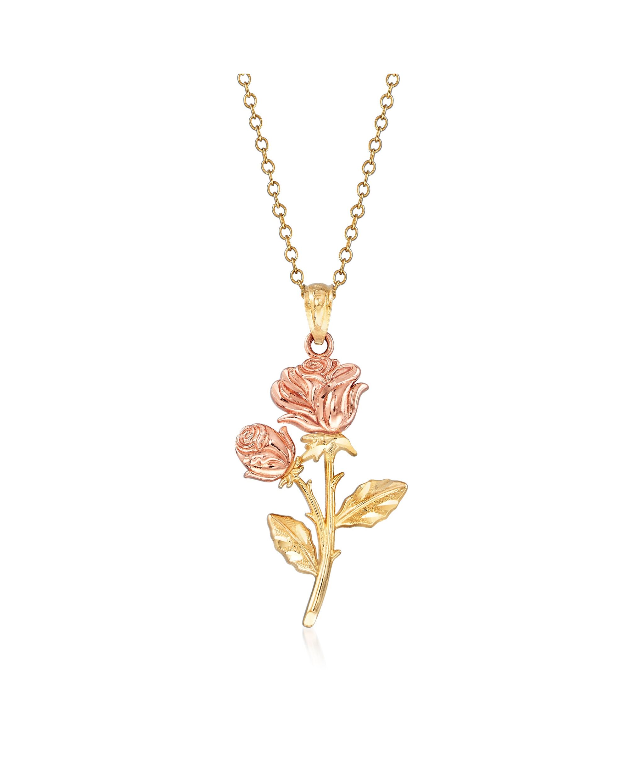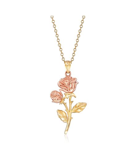 Ross-Simons 14kt 2-Tone Gold Rose Pendant Necklace