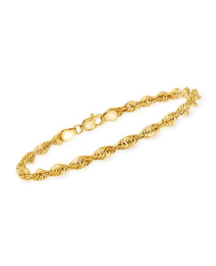 Established in 1952, Ross-Simons presents contemporary styles with a timeless appeal. Simple, elegant, and all you need for a hint of glamour. This 4mm rope chain bracelet gleams in Italian-crafted 14kt yellow gold. Lobster clasp, 14kt yellow gold rope bracelet. Each Ross-Simons item arrives in a fine jewelry presentation box. Shop Ross-Simons jewelry risk-free as all items include a 30-day, 100% money-back guarantee.