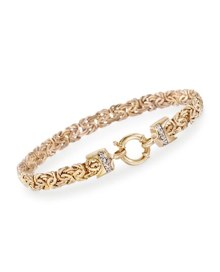 Ross-Simons 14kt Yellow Gold Byzantine Bracelet With Diamond Accents