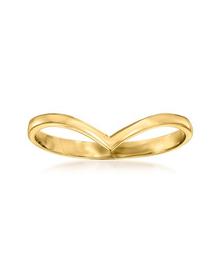 With a commitment to quality and affordability, Ross-Simons presents timeless jewelry for the modern woman. RS Pure. Modern designs that complete your outfit and complement your personality. Sleek and subliminal, perfect for daily wear! Shining in 14kt yellow gold, our chic chevron ring looks fantastic stacked in an assortment of rings. 1/8" wide. 14kt yellow gold chevron ring. Each Ross-Simons item arrives in a fine jewelry presentation box. Shop Ross-Simons jewelry risk-free as all items include a 30-day, 100% money-back guarantee.