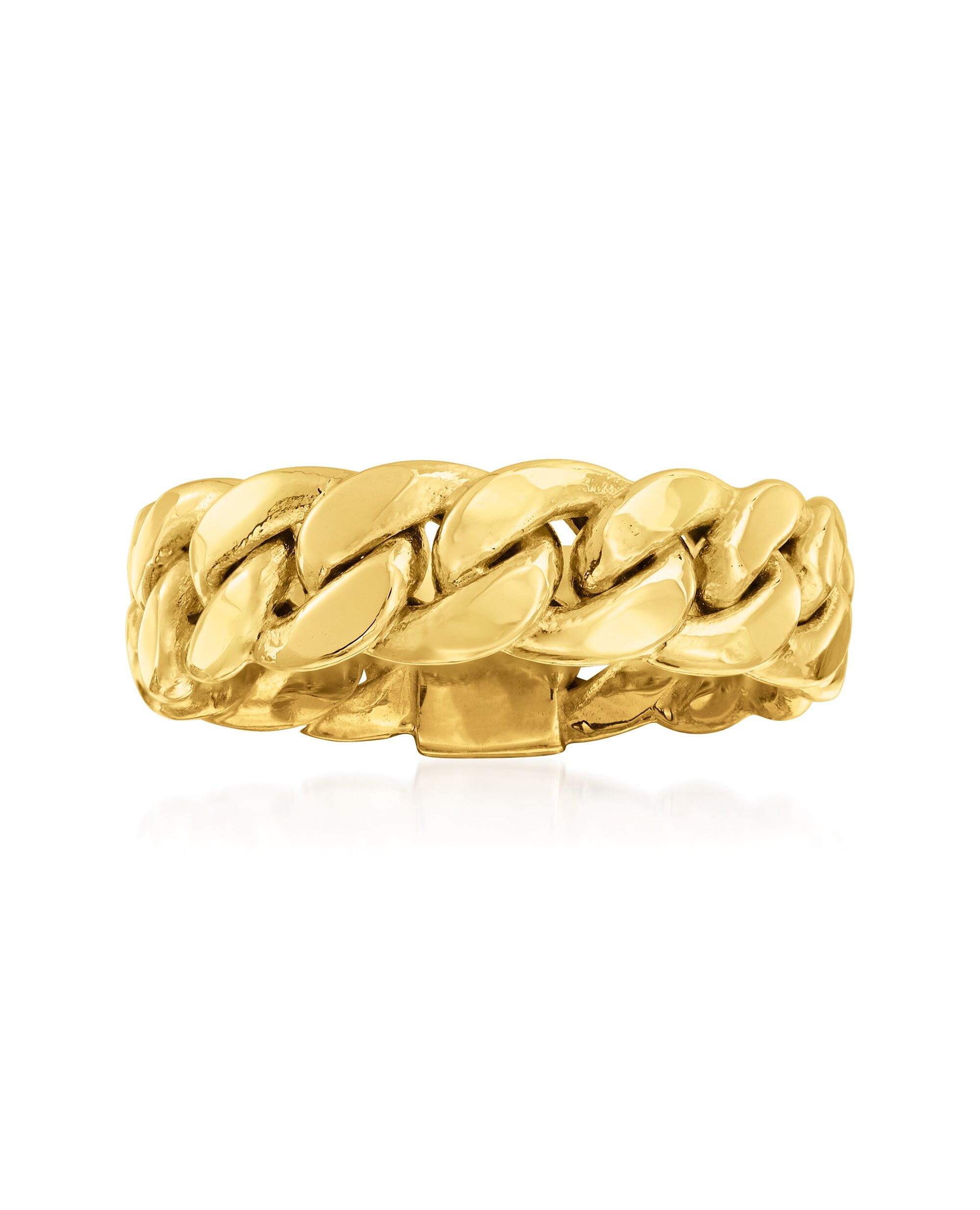 With a commitment to quality and affordability, Ross-Simons presents timeless jewelry for the modern woman. In a sophisticated design of handcrafted curb links, this glossy 14kt yellow gold ring is a must-have for every jewelry collection. 1/4" wide. 14kt gold curb-link ring. Each Ross-Simons item arrives in a fine jewelry presentation box. Shop Ross-Simons jewelry risk-free as all items include a 30-day, 100% money-back guarantee.