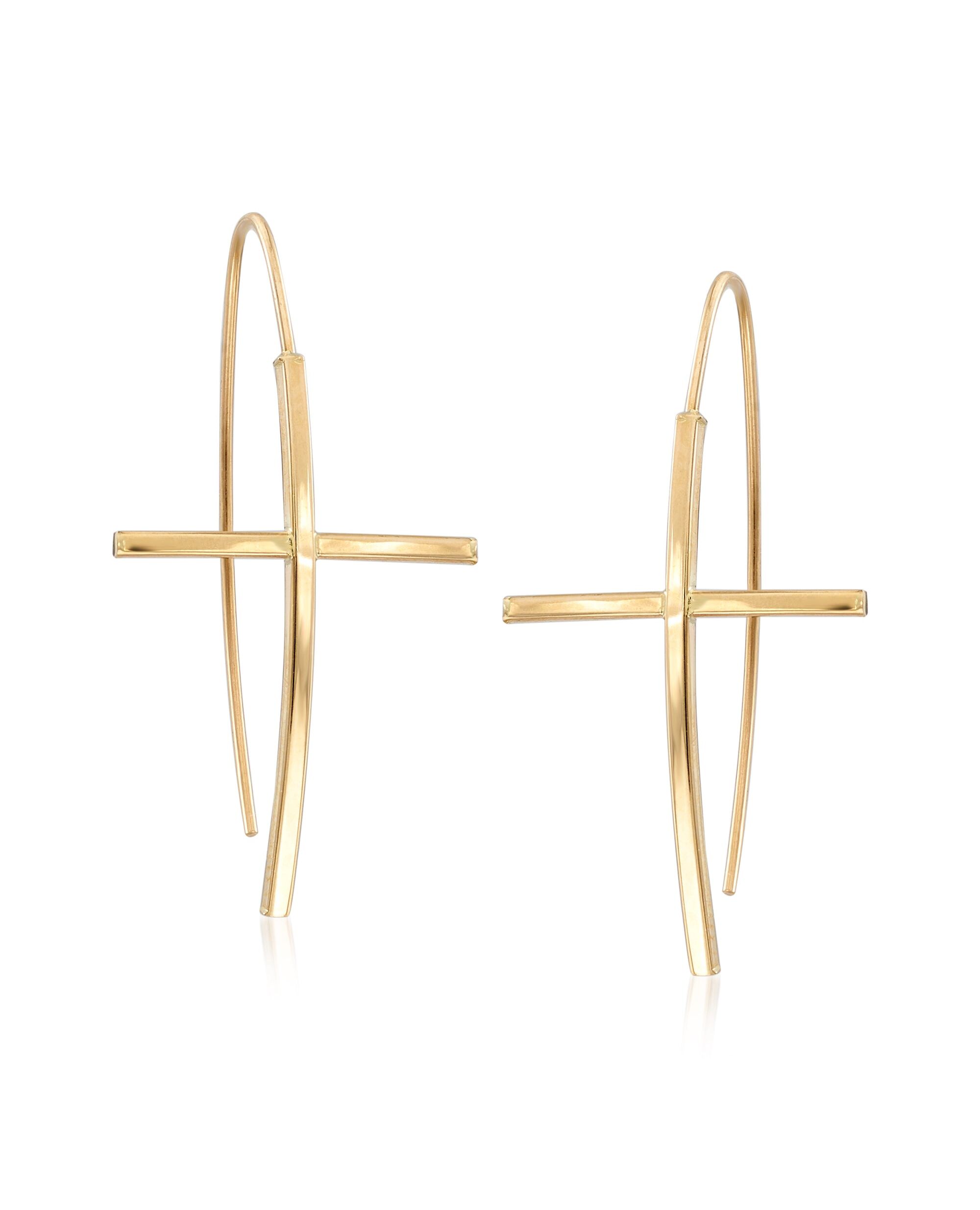 Ross-Simons 14kt Yellow Gold Curved Cross Drop Earrings