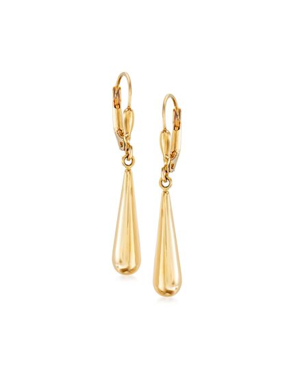 With a commitment to quality and affordability, Ross-Simons presents timeless jewelry for the modern woman. Everyday elegance - these earring drop elongated teardrops with a high-gloss finish. Hanging length is 1 1/4". Leverback, 14kt yellow gold earrings. Each Ross-Simons item arrives in a fine jewelry presentation box. Shop Ross-Simons jewelry risk-free as all items include a 30-day, 100% money-back guarantee.